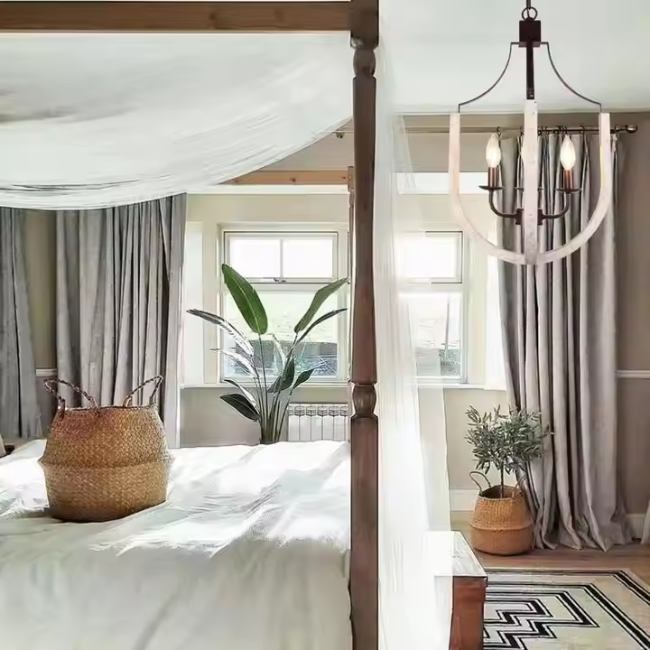 This American retro small chandelier (Model: HF6319 - 4) exudes a unique charm. Combining iron and solid wood materials, it is sturdy, durable, and environmentally friendly. With a creative appearance design and equipped with E14 light sources, it emits a warm glow. Suitable for living rooms and bedrooms of 16 - 22㎡, it measures 59CM * 36CM. It's easy to maintain - just wipe with a soft cloth. It adds a retro touch to your home, making it a standout piece whether you're decorating a new house or renovating.