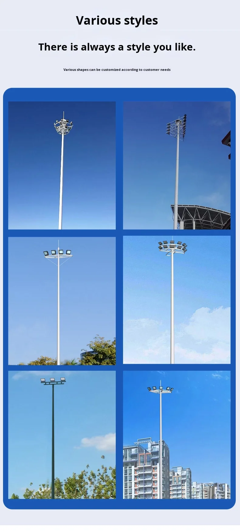 30 m høj aluminium udendørs lysmast målt meter høj mastlys pæl til gade stadion lampepæle