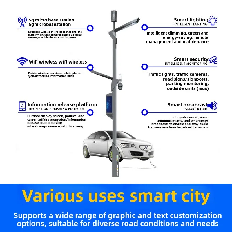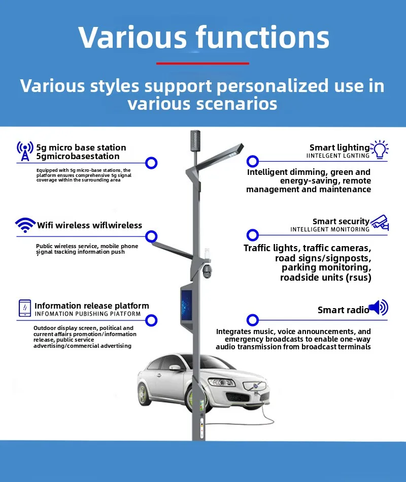 Udendørs smart LED-gadepæl, IP65 vandtæt, med overvågningskamera til have, vej, plads, gade, vekselstrømsforsyning til smarte byer