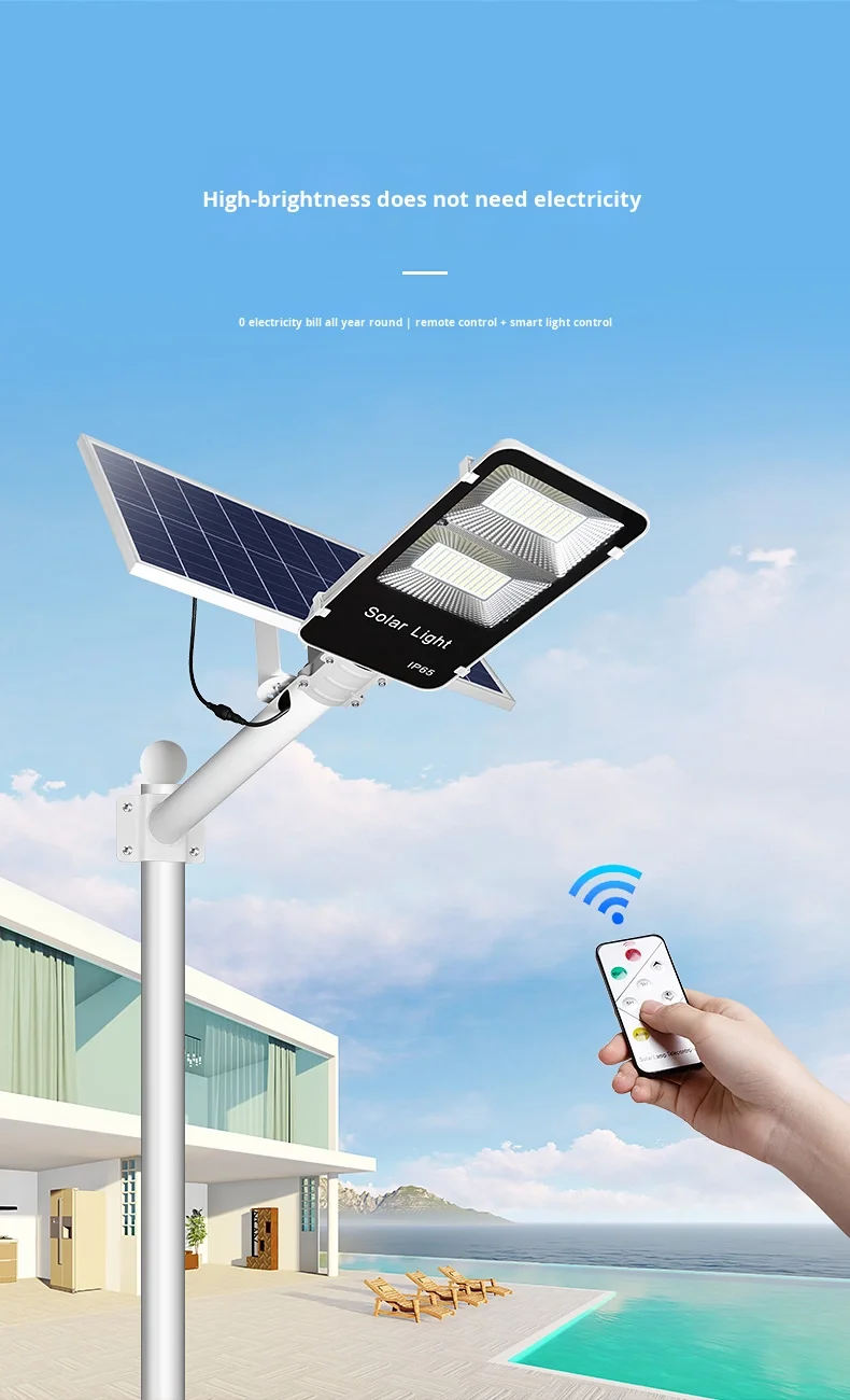 Engros Hot Sale Split monokrystallinsk gadelampe med lithiumbatteri, kommerciel 100W 200W 300W 500W Led solgadebelysning
