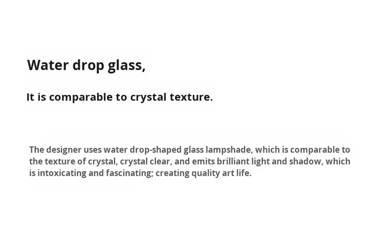 En cuanto a la calidad de iluminación, controlamos estrictamente cada aspecto. Desde la cuidadosa selección de materias primas hasta el meticuloso trabajo artesanal durante la producción, garantizamos lámparas de alta calidad. Nuestro equipo profesional está compuesto por diseñadores senior, expertos técnicos y artesanos experimentados que llevan muchos años profundamente involucrados en el campo de la iluminación, combinando conceptos vanguardistas con habilidades exquisitas.