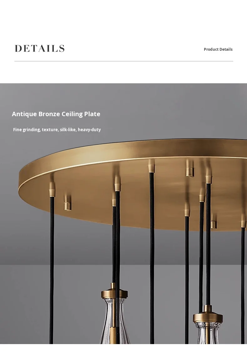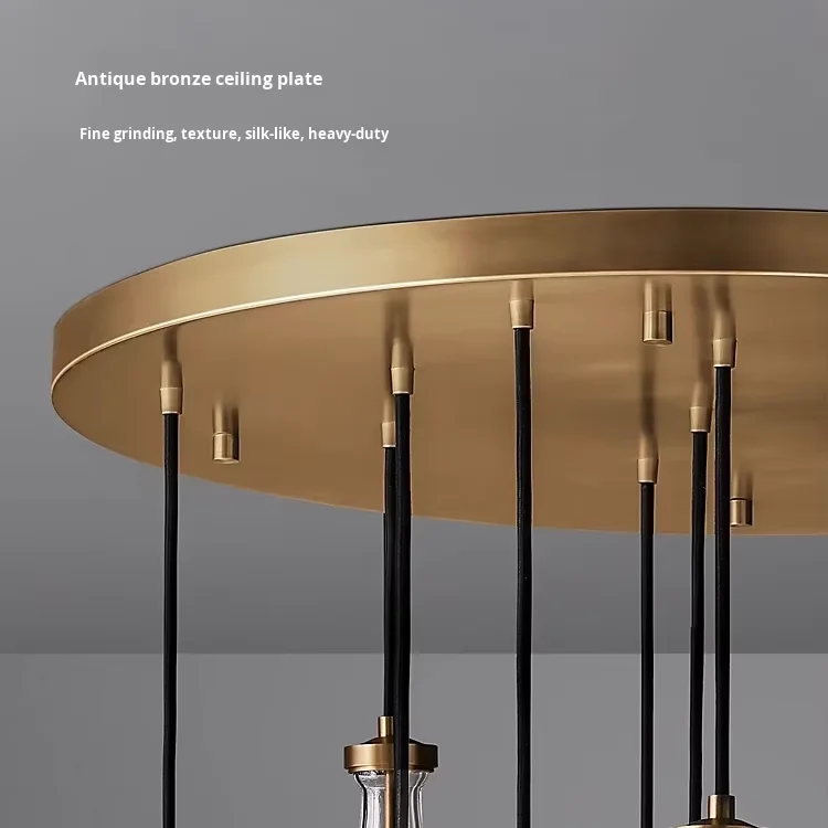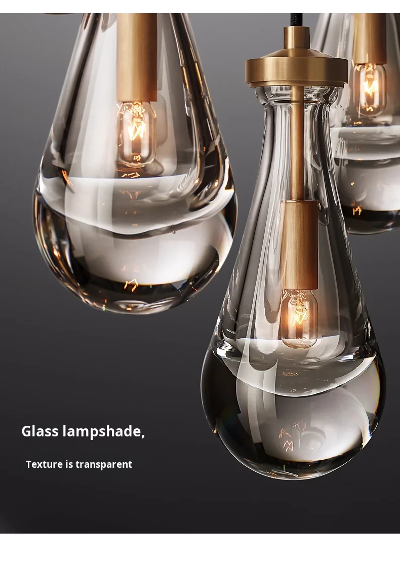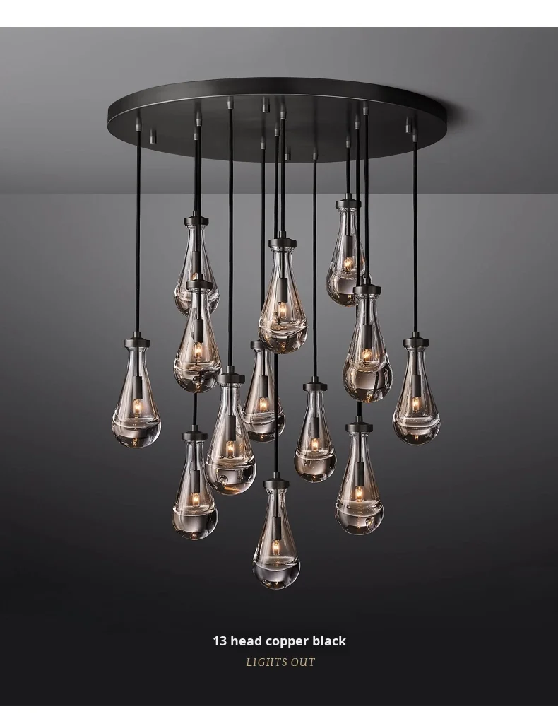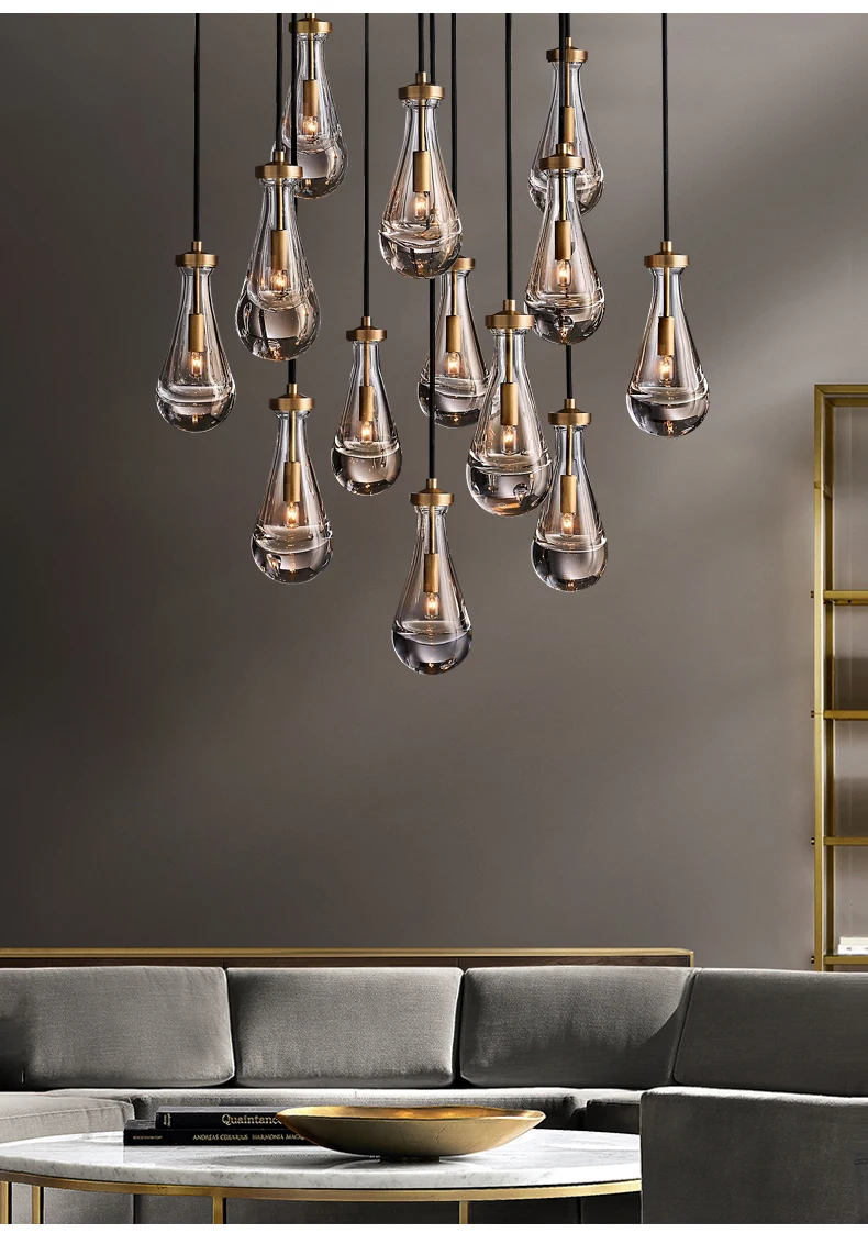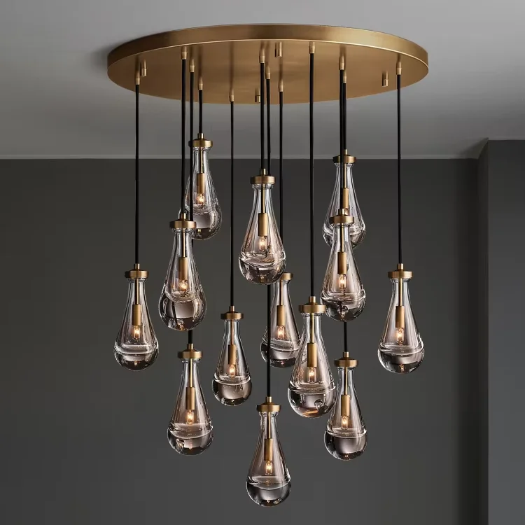 Araña grande de cobre {Gota de agua} para sala, dormitorio, escalera al aire libre, villa dúplex, lámpara de tamaño medio de material de hierro
