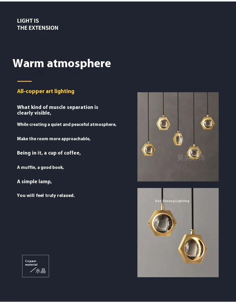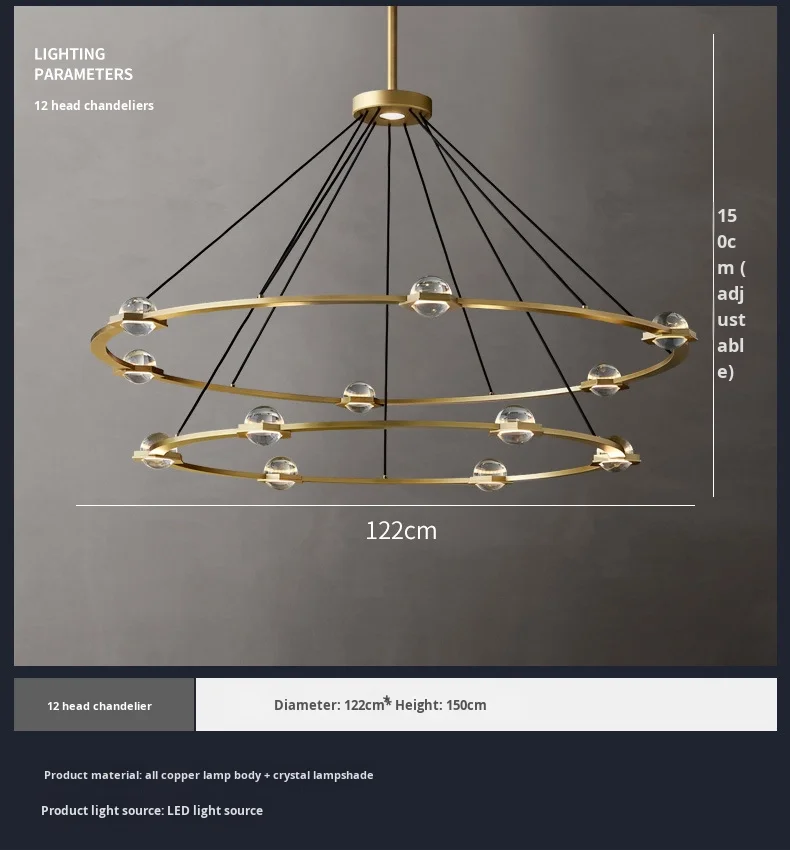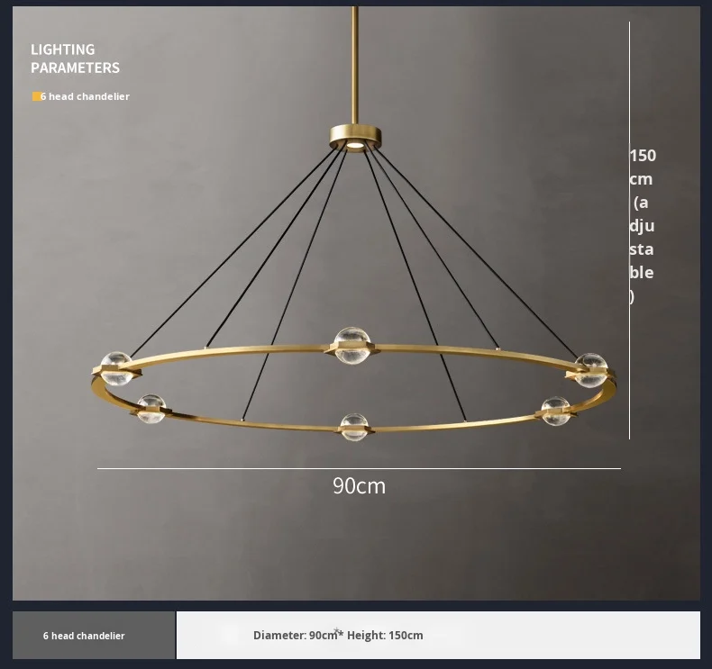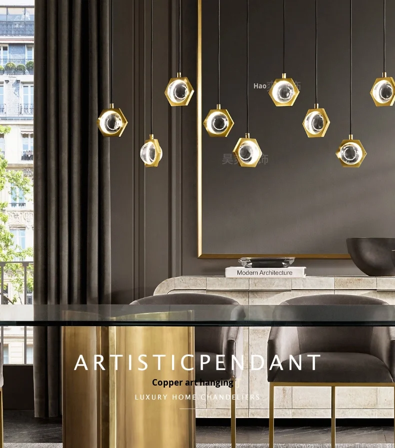 Araña simple de cobre recomendada por diseñador estadounidense para sala y comedor, color y material personalizables, venta directa de fábrica