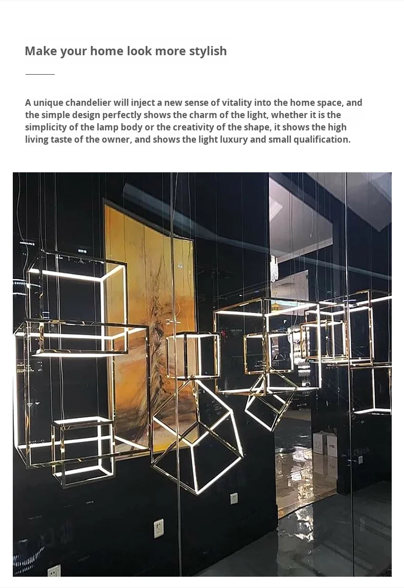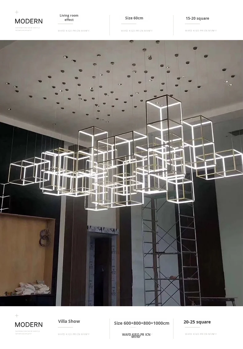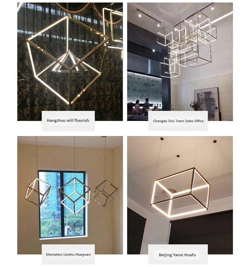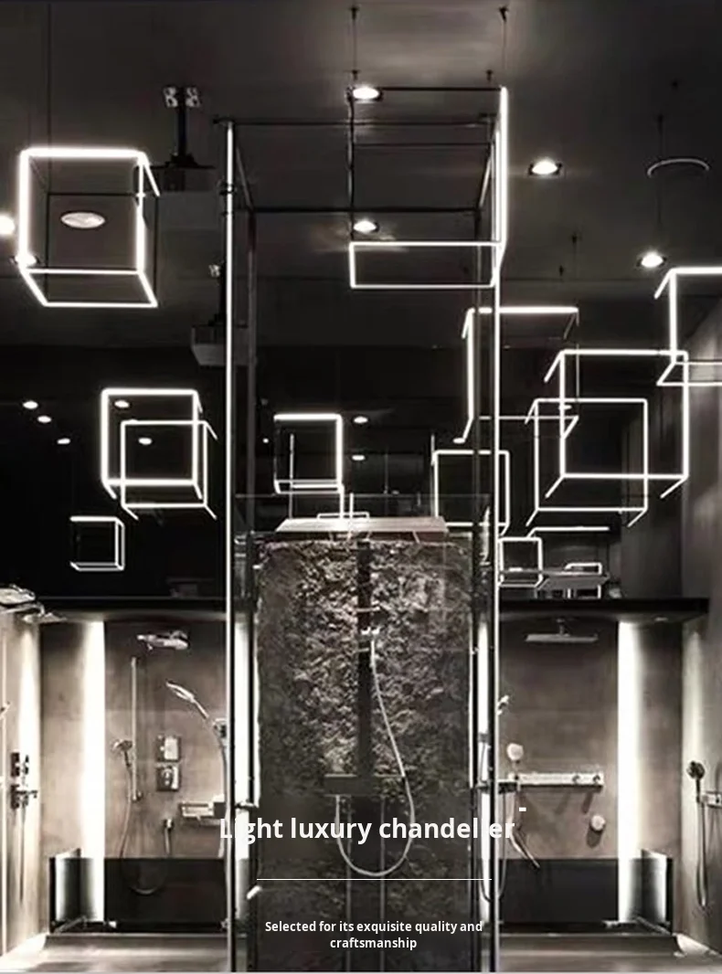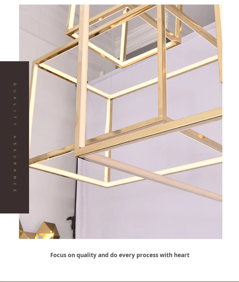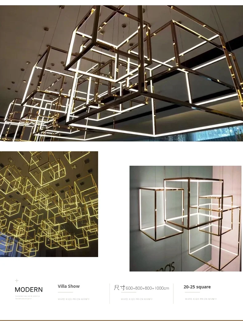 Lámpara colgante cuadrada creativa posmoderna minimalista de acero inoxidable para techos altos, luz de lujo para comedor, sala de estar y salas de exposición