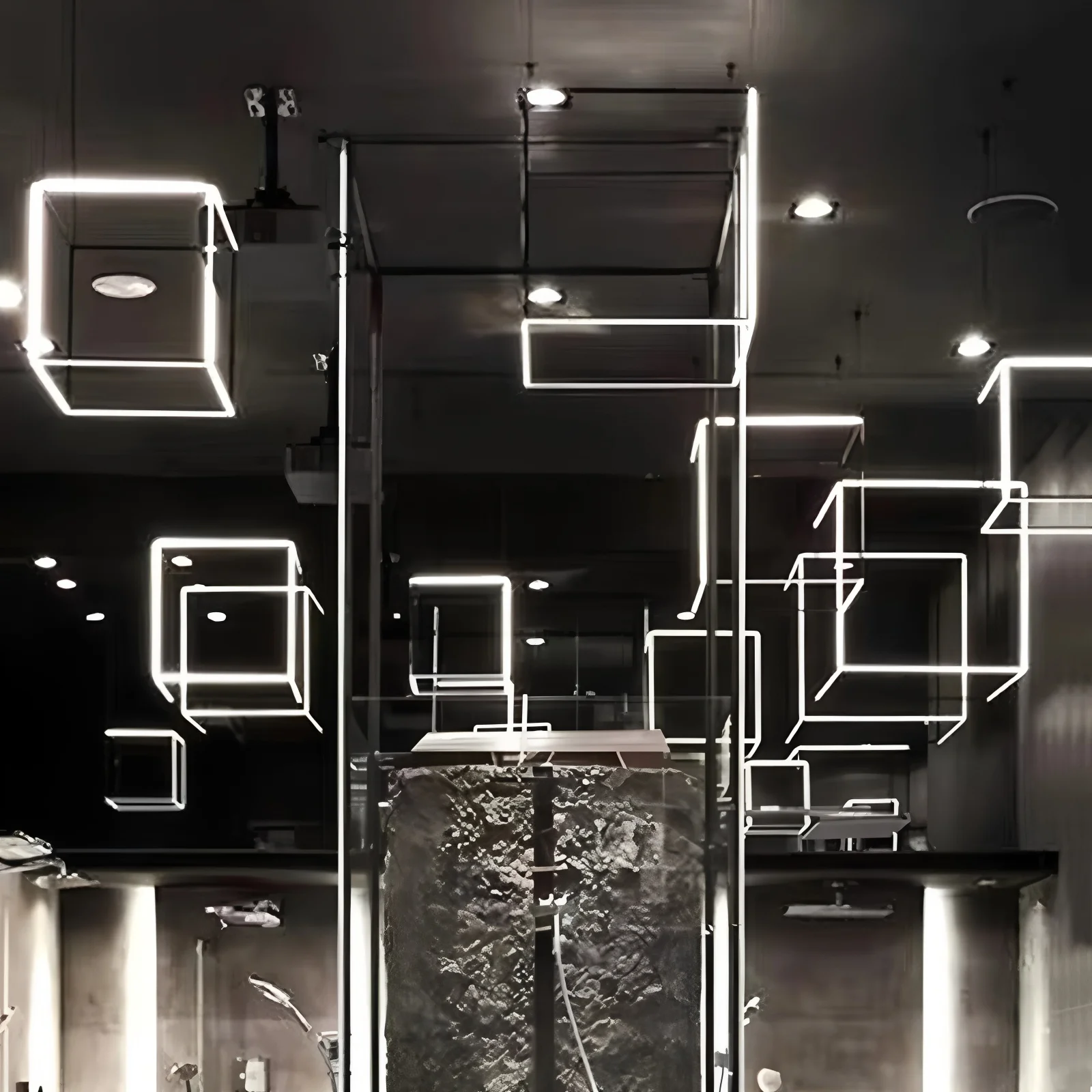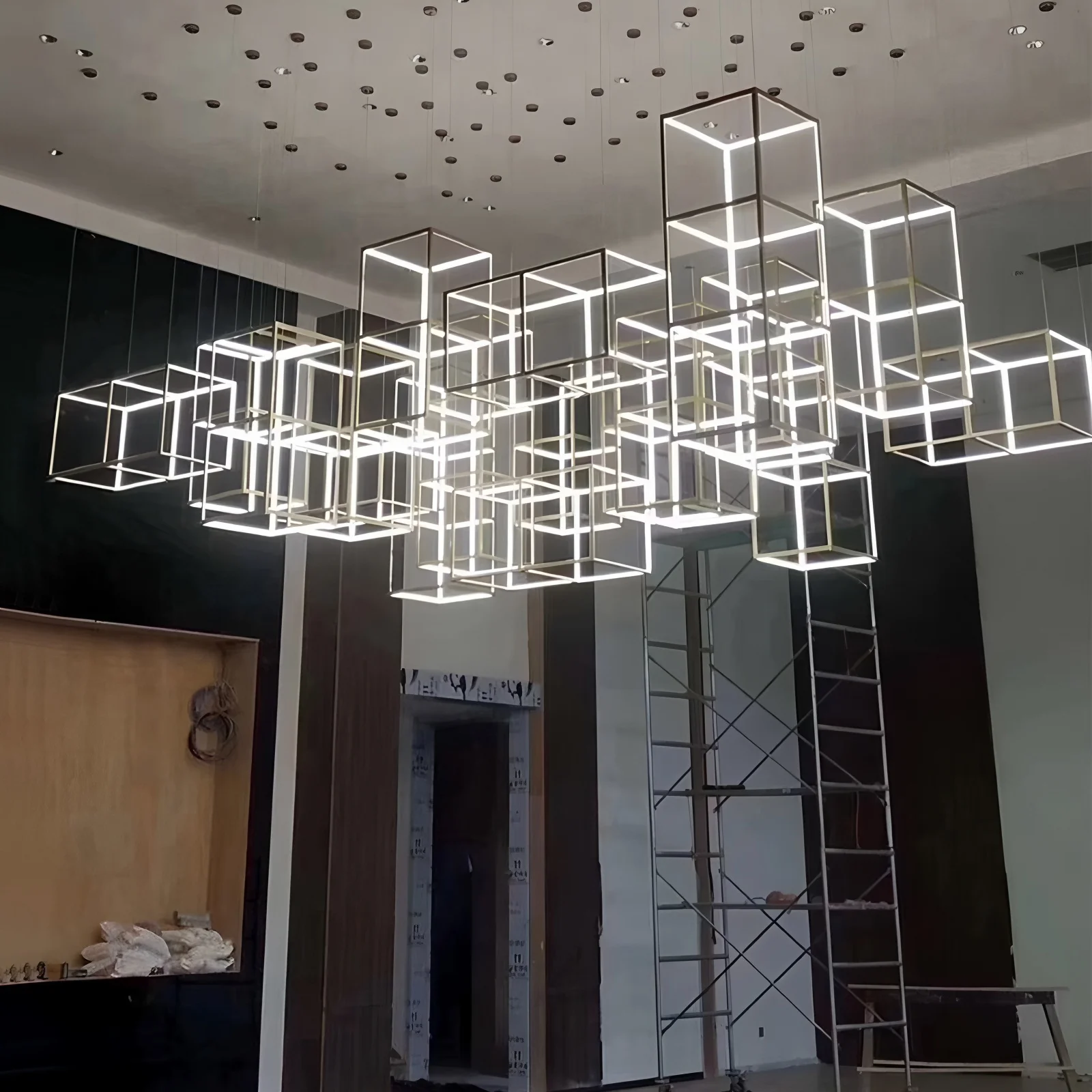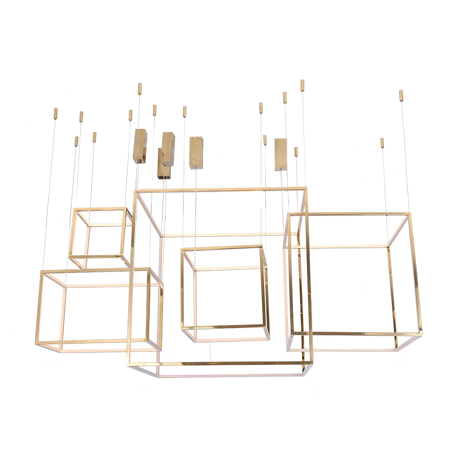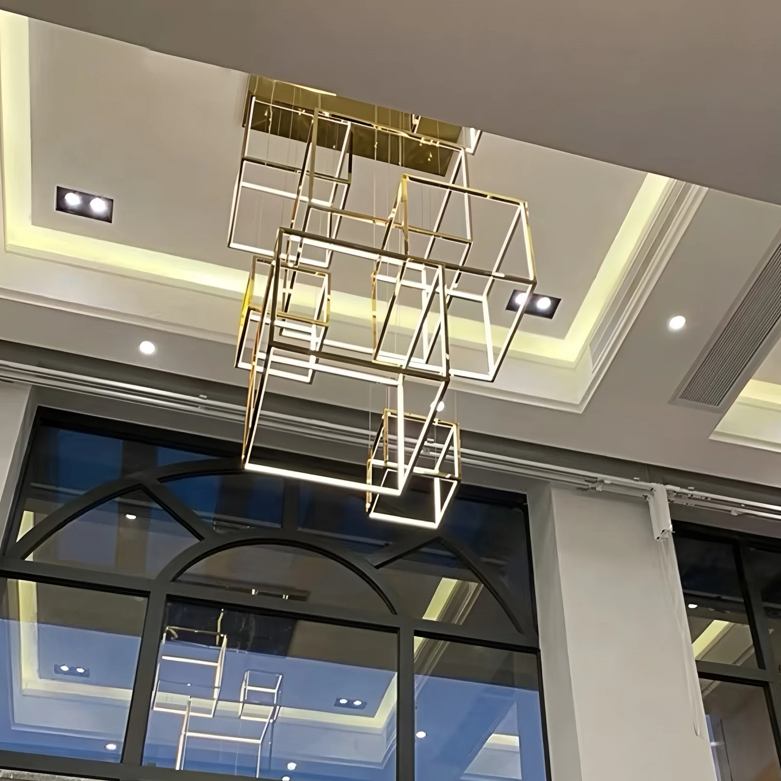 Lámpara colgante cuadrada creativa posmoderna minimalista de acero inoxidable para techos altos, luz de lujo para comedor, sala de estar y salas de exposición