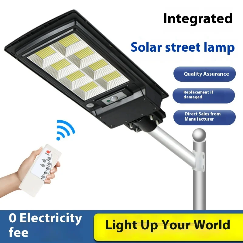 Luz solar LED callejera 300 W, 600 W, iluminación exterior con sensor de movimiento, luz solar para carreteras, IP65, jardín exterior, patio, con poste y mando a distancia