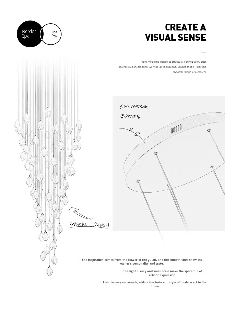 Con 15 años de experiencia, somos un fabricante origen. Especializados en candelabros de cristal, luces de cristal personalizadas e ingeniería y luces para exteriores. Diseño interno para soluciones únicas. Servicio uno a uno, costo-efectivo.