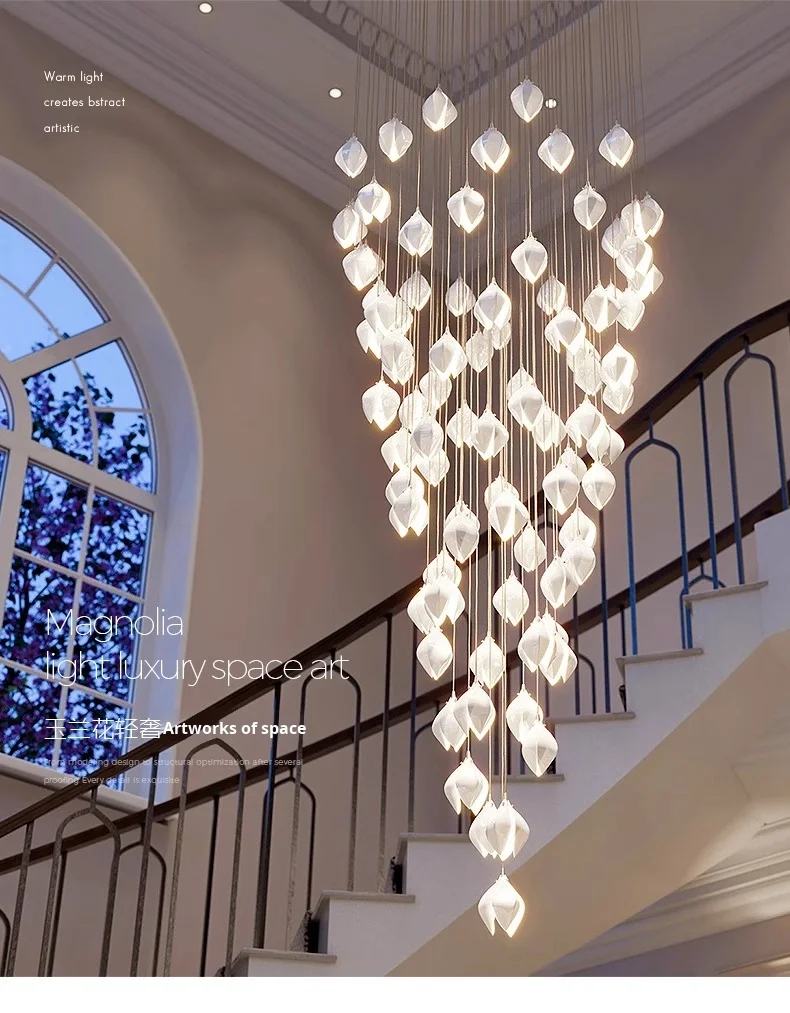 Araña moderna minimalista grande para oficina de ventas, luz decorativa, lámpara hueca de diseño para villa o escalera, tamaños medianos