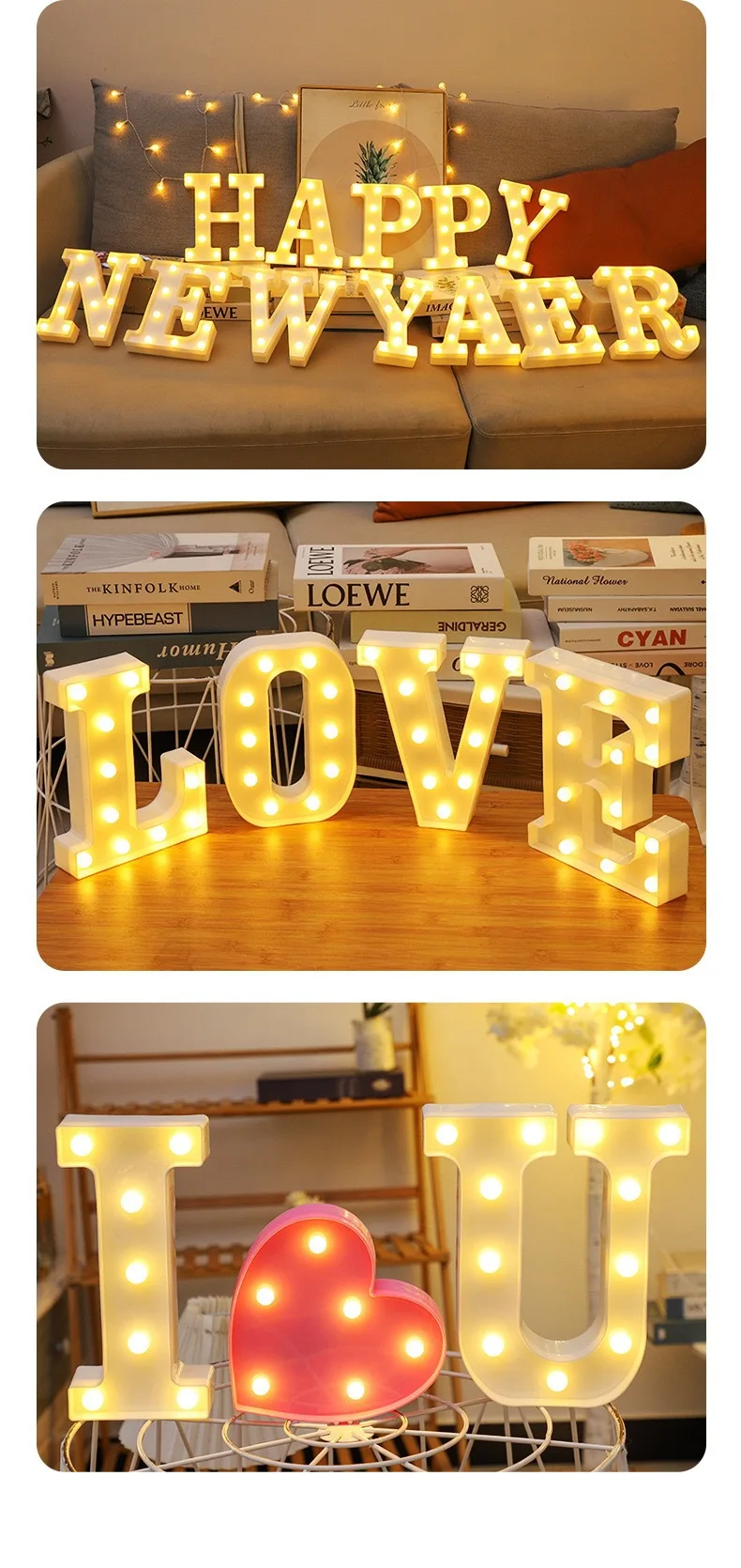 لامپ تزئینی دیجیتال ال ای دی با حروف انگلیسی رومانتیک، محصولی برای تزئین روز تولد، اعتراف عاشقانه، پیشنهاد ازدواج، تجهیزات آرایشگاهی با استاندارد IP65