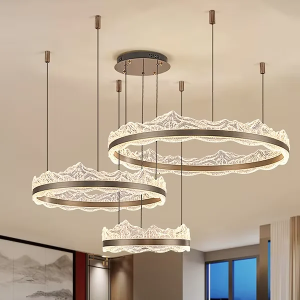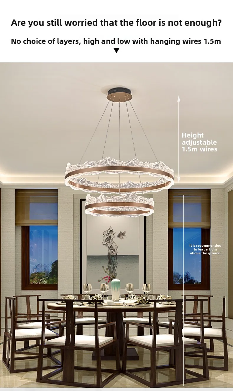 چراغ لوستر مدرن طراحی شده حرفهای با حلقه نور برای اتاق خواب، میز بار خصوصی، رستوران چینی جدید، قابلیت تنظیم ارتفاع