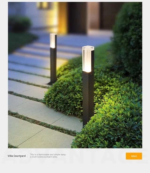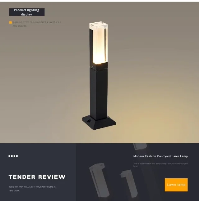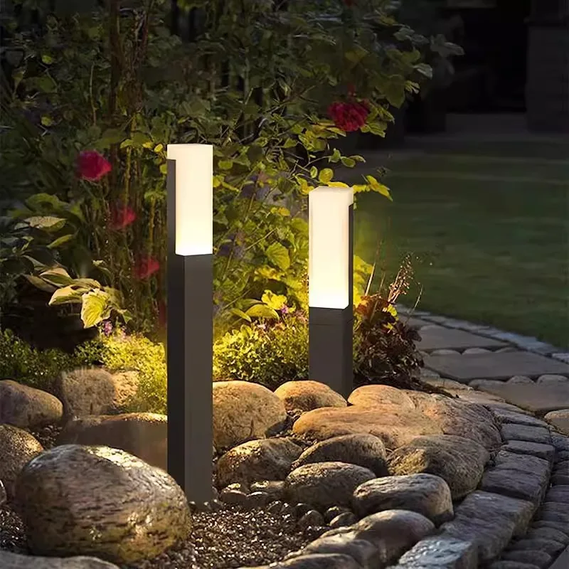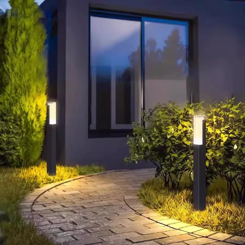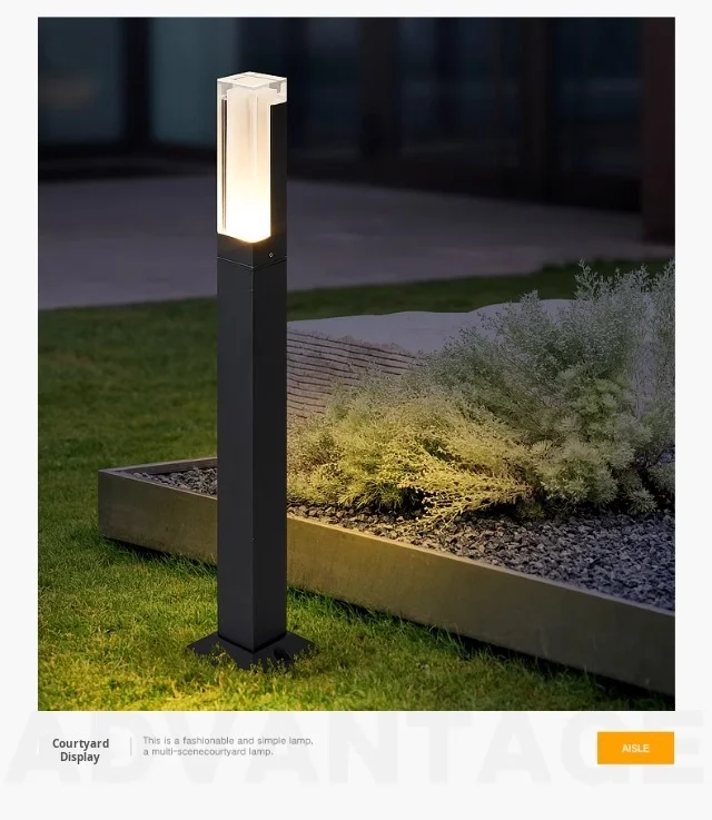 چراغ چمن بیرونی مدرن، چراغ خیابانی پایه بلند ساده نصب روی زمین برای ویلا، باغ، منظره، ضد آب، کارآمد با انرژی خورشیدی IP65