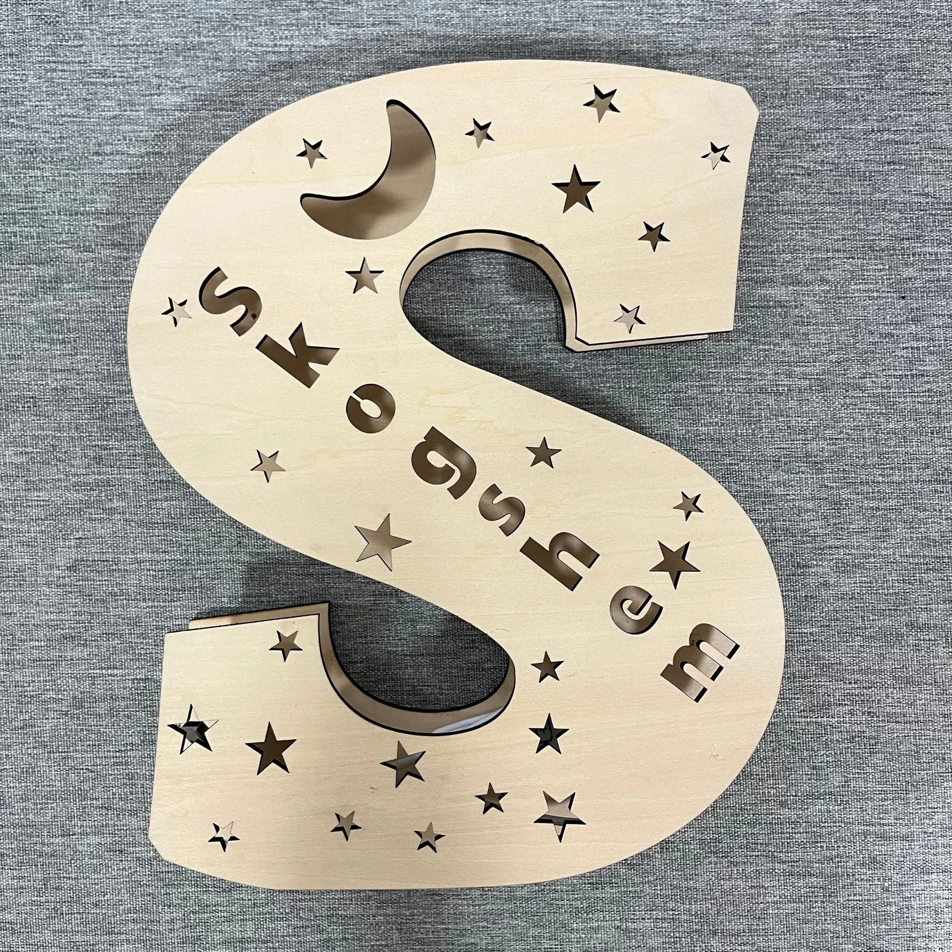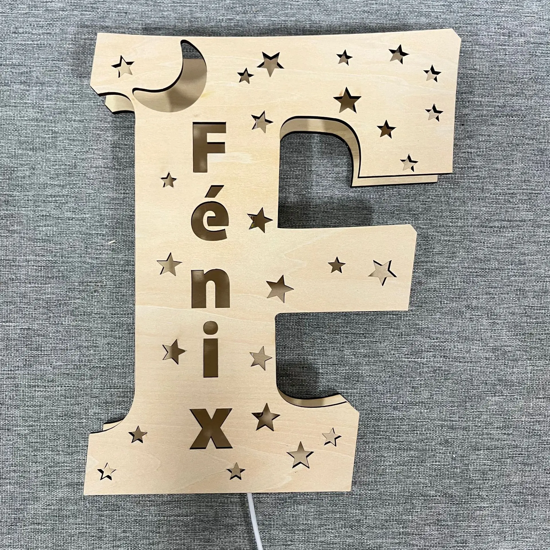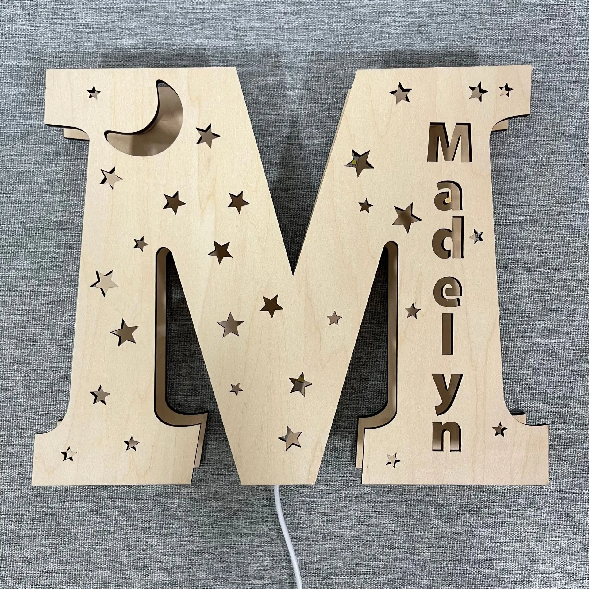 لامپ تزئینی چوبی الفبای ال ای دی منحصربهفرد جدید، چراغ شب با نام حکشده شخصی، دستگاه دیواری قابل نصب برای تزئین اتاق خواب