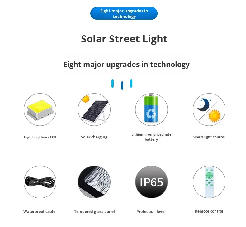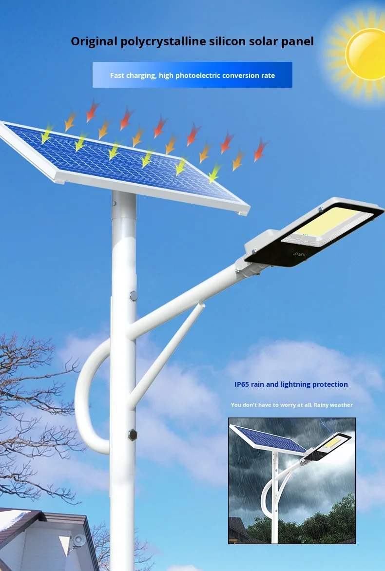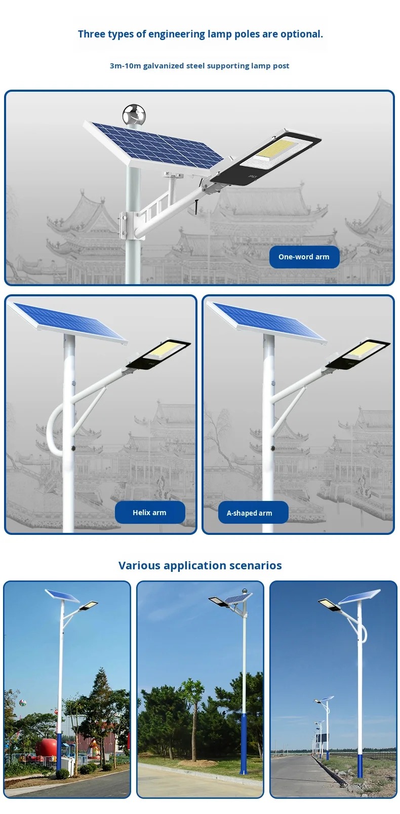 چراغ خورشیدی خیابانی یکپارچه، چراغ LED خورشیدی خیابانی همراه با پایه، رده IP65 یکپارچه، 60 وات، 80 وات، 100 وات، 120 وات