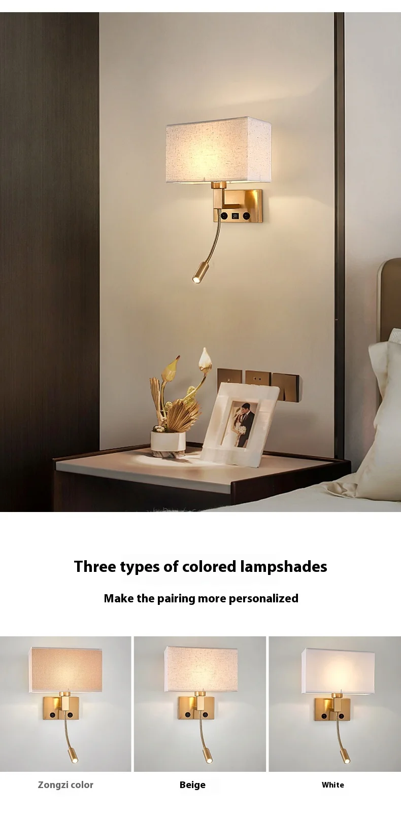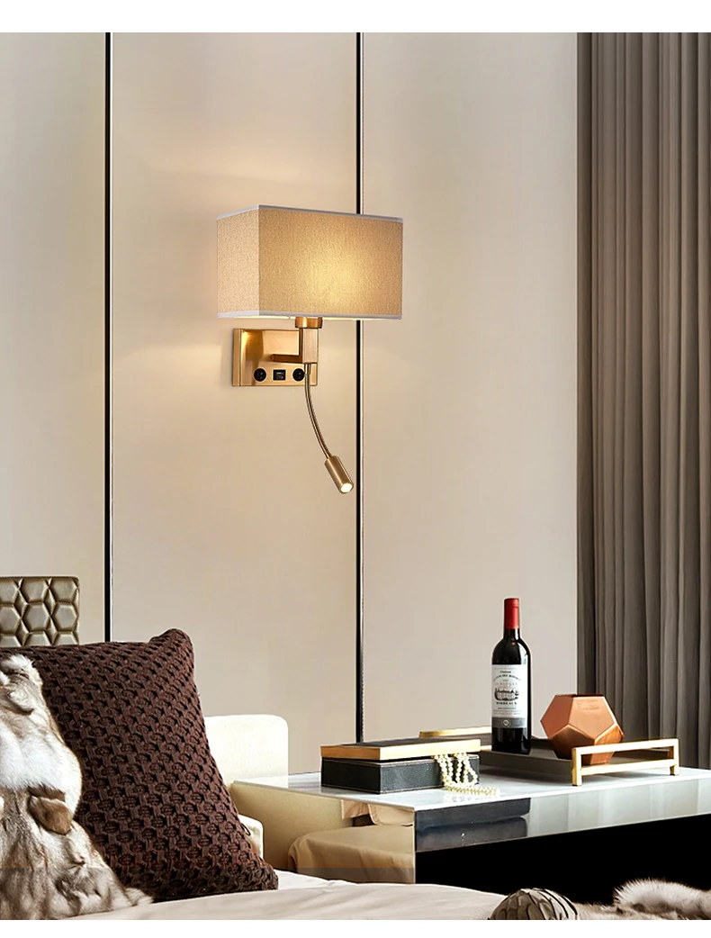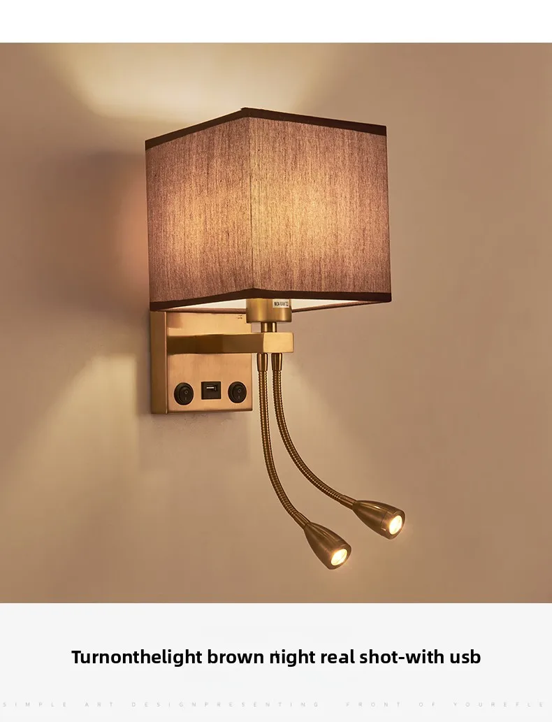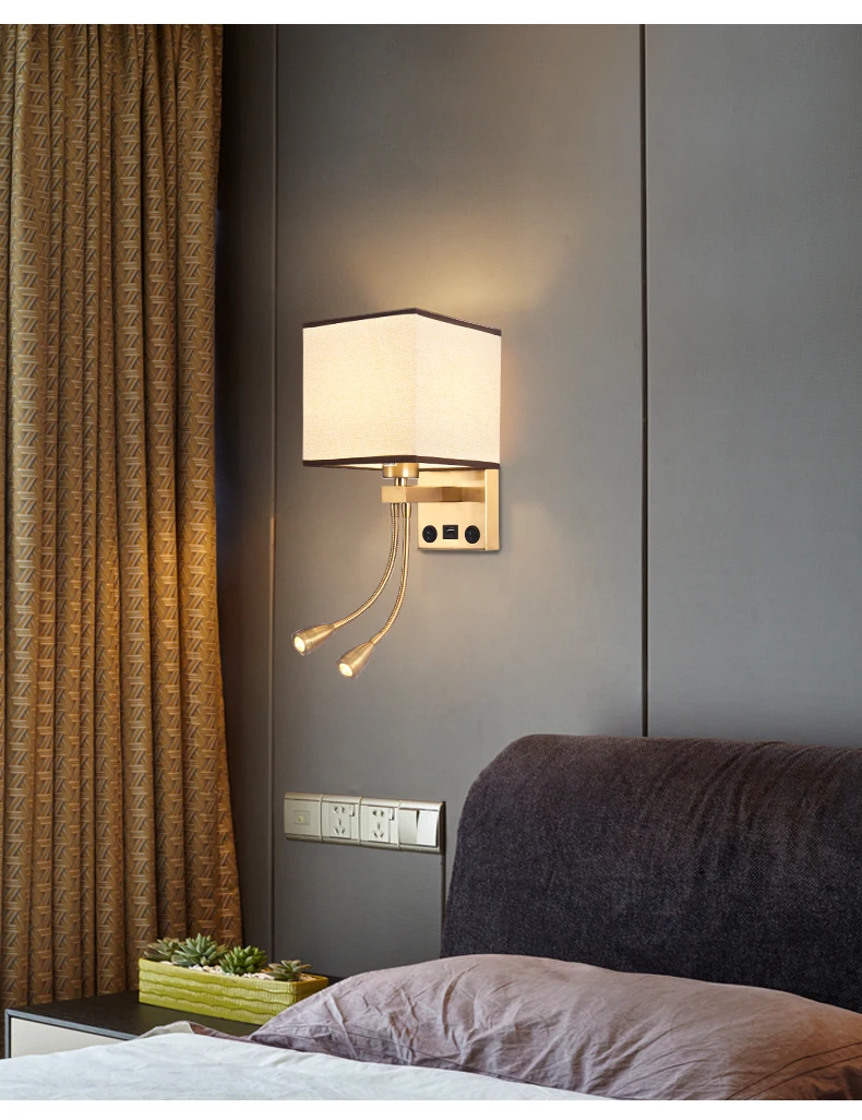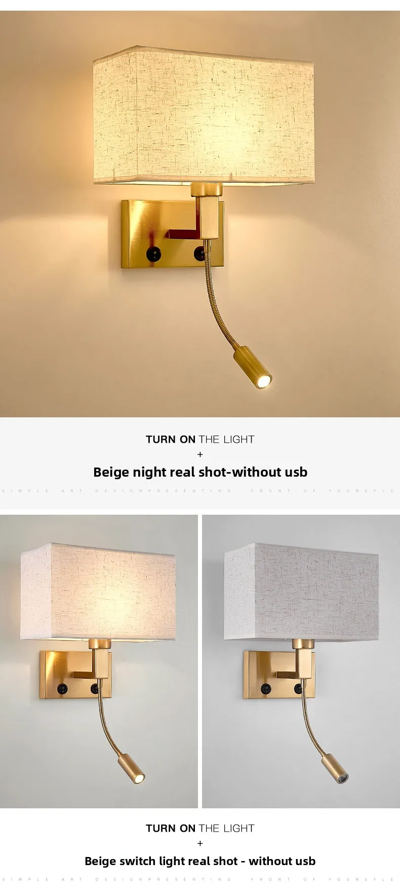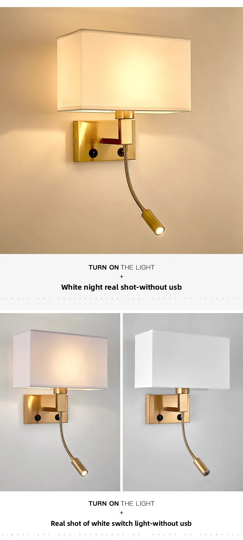 Lampe murale noire câblée avec abat-jour en tissu Port USB et lampe de lecture LED Corps en fer Lampes murales de chambre à coucher Prise murale Commutateurs inclus