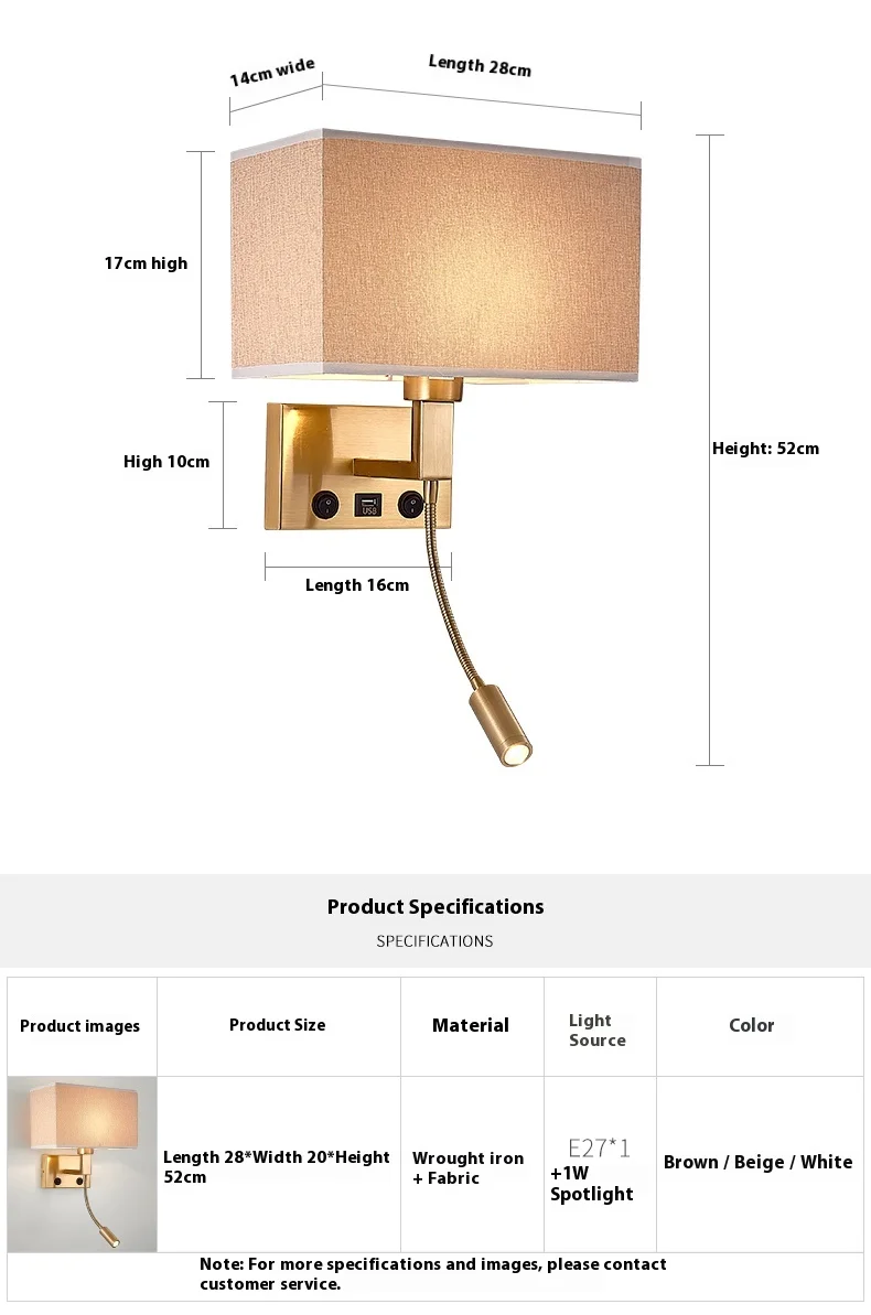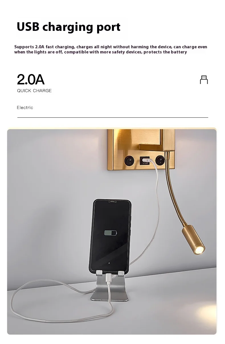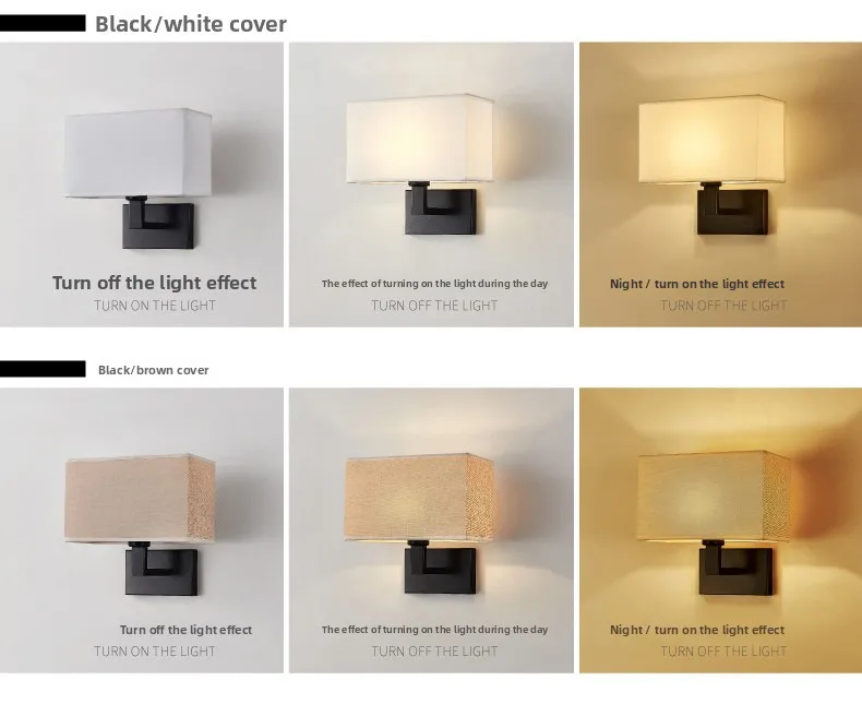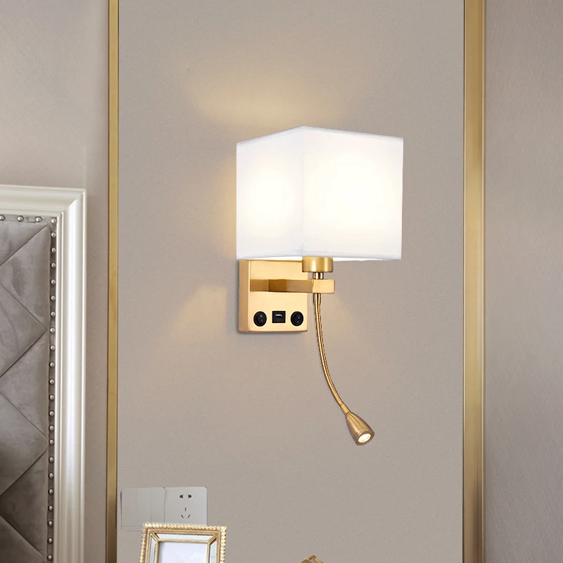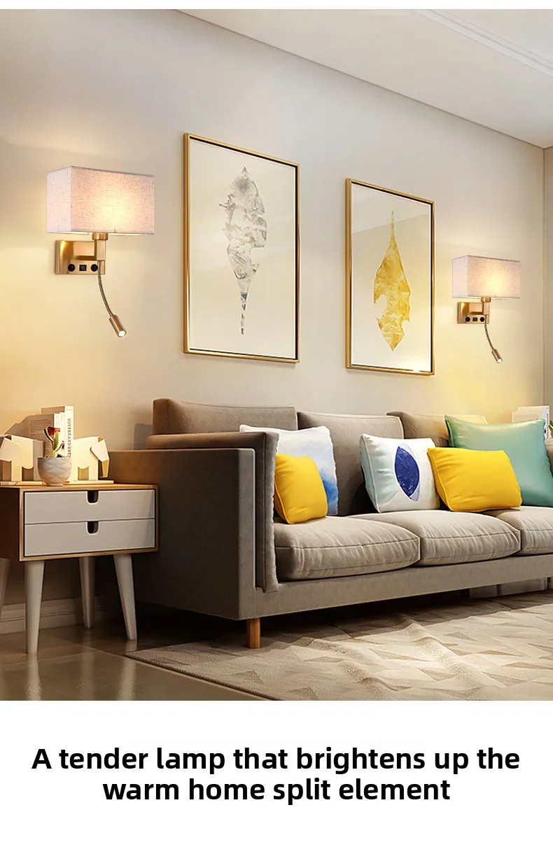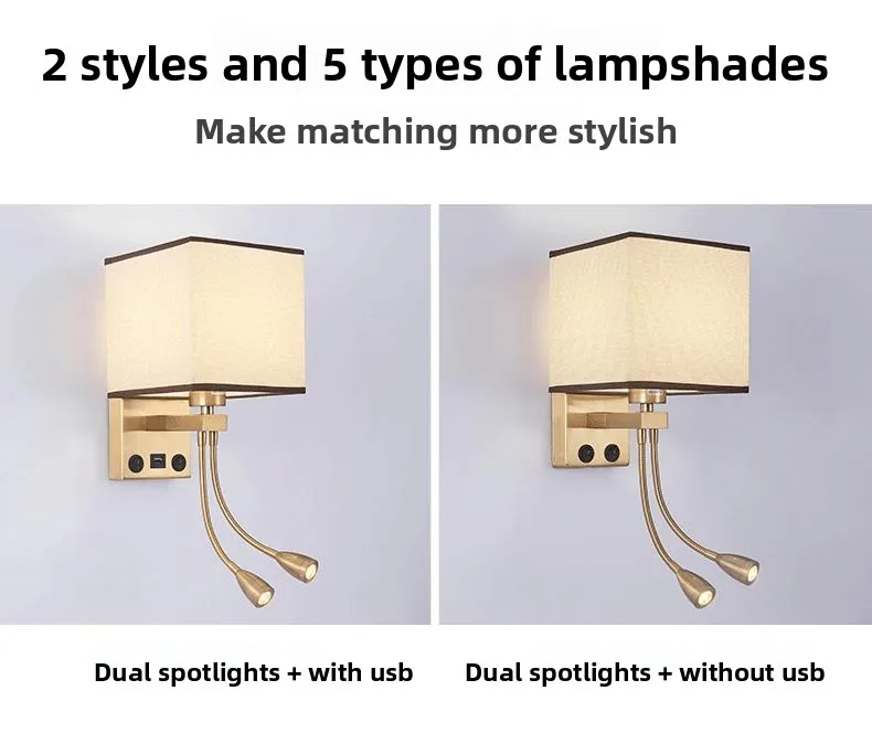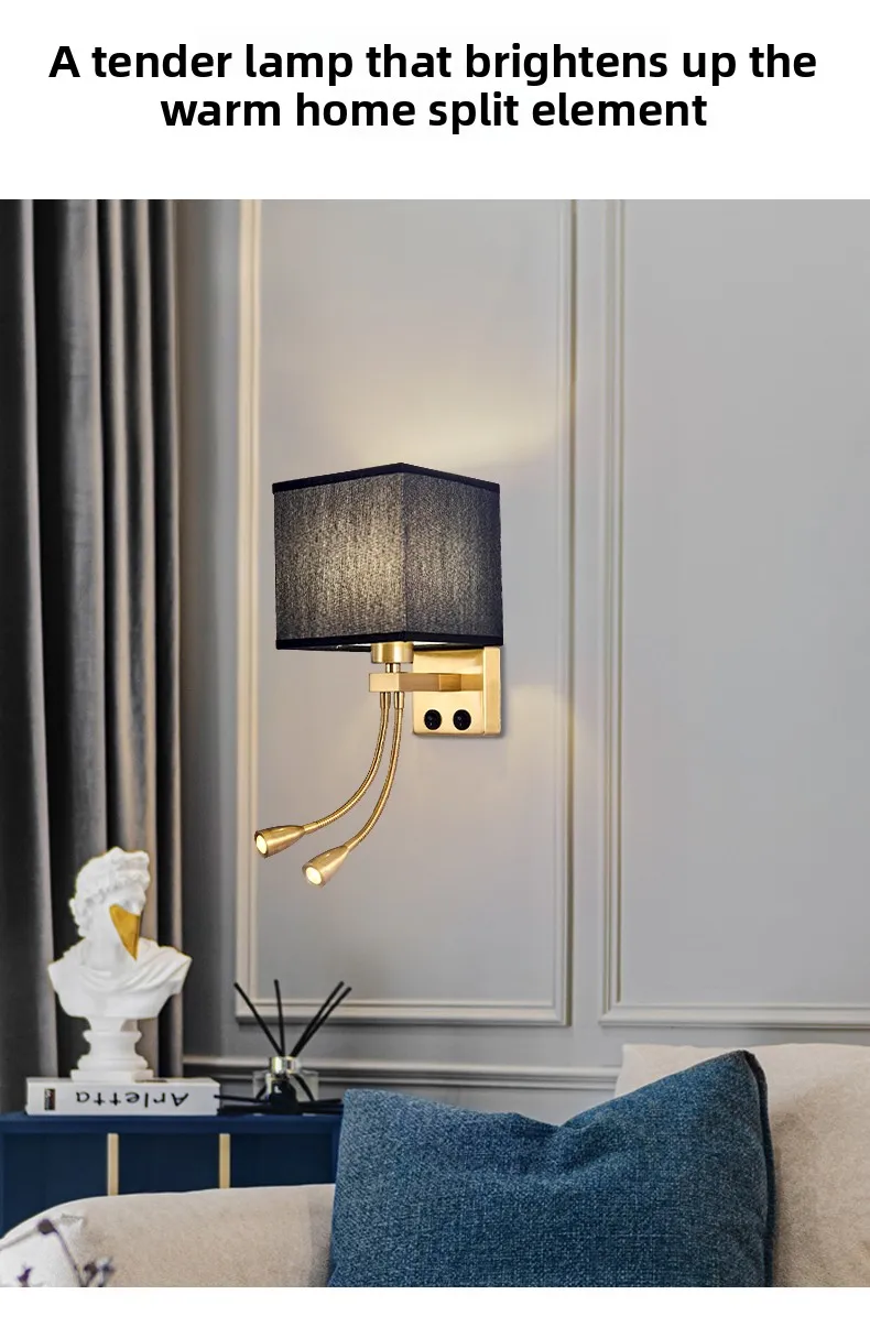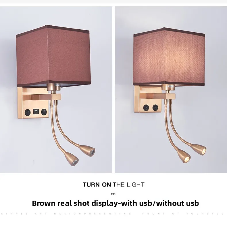 Lampe murale noire câblée avec abat-jour en tissu Port USB et lampe de lecture LED Corps en fer Lampes murales de chambre à coucher Prise murale Commutateurs inclus