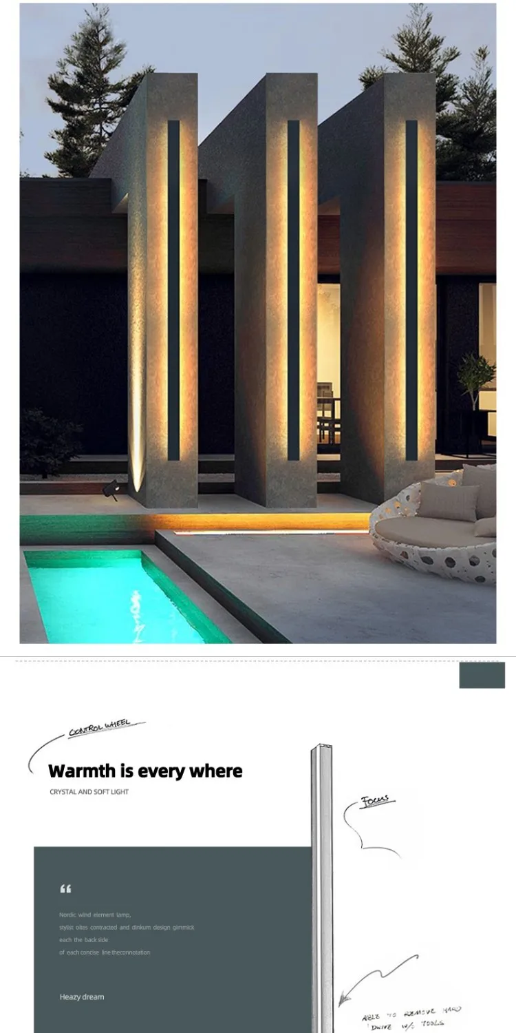Lampe murale LED extérieure Monture à bande courte Jardin Villa Éclairage extérieur moderne pour maison Éclairage extérieur domestique