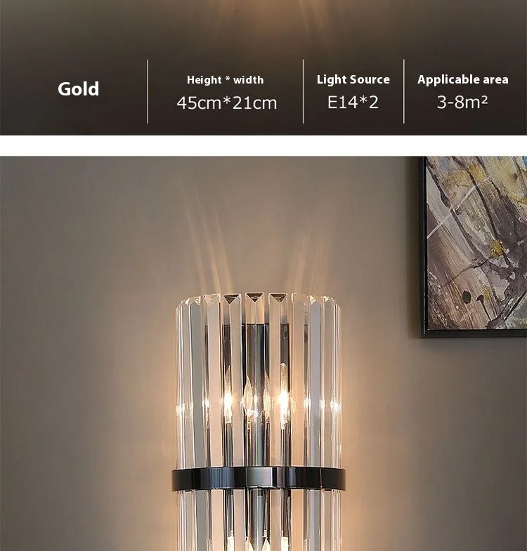Lampu Dinding Kristal Retro Logam Klasik Antik Mewah Pencahayaan Interior LED untuk Ruang Tamu, Koridor Hotel, Kamar Tidur, Dekorasi Samping Tempat Tidur
