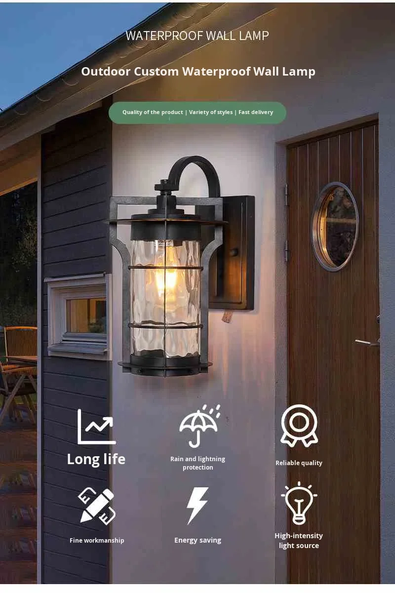 Lampu Dinding Luar Ruangan Gaya Pedesaan Amerika & Eropa, Tahan Air, Aluminium, LED Dapat Diredupkan, untuk Taman, Halaman, Balkon