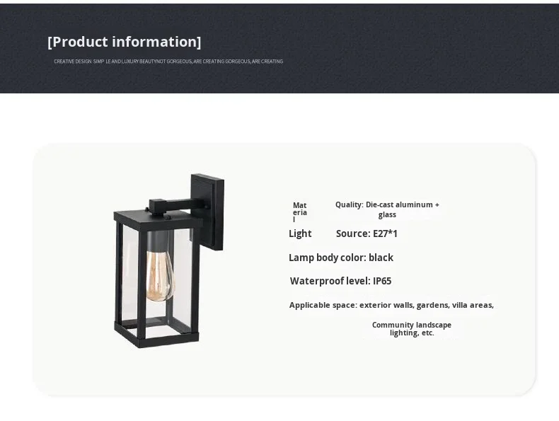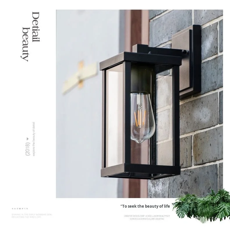 Lampu Dinding LED Aluminium Tahan Air Luar Ruangan Desain Kotak untuk Vila, Koridor, Balkon, Gaya Tempel Sederhana Retro