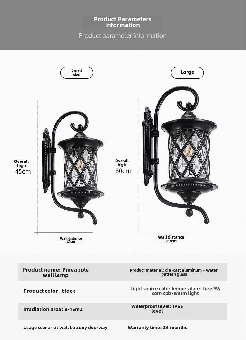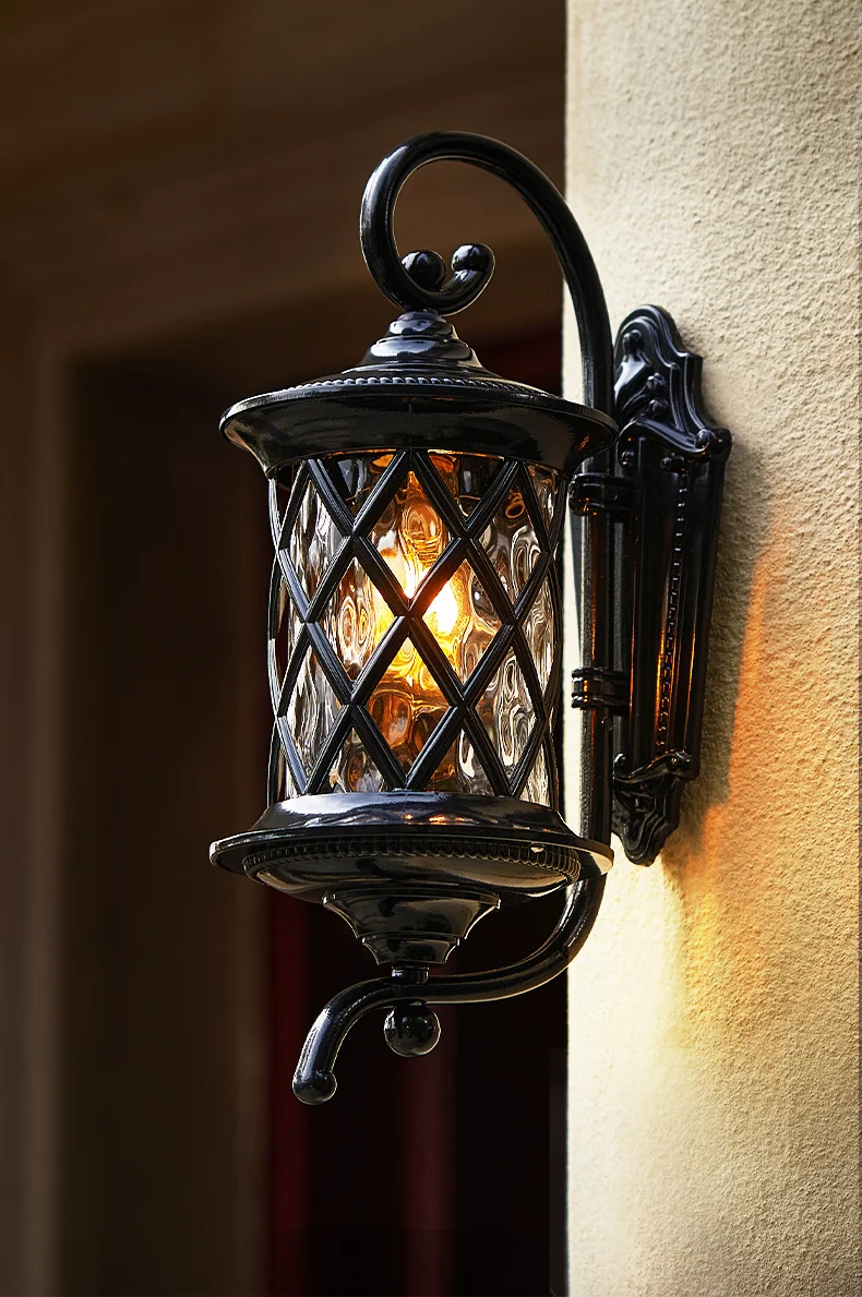 Lampu Dinding LED Tahan Air Luar Ruangan untuk Eksterior Vila, Balkon, Koridor & Halaman - Gaya Pedesaan Amerika, Aluminium dapat Diredupkan
