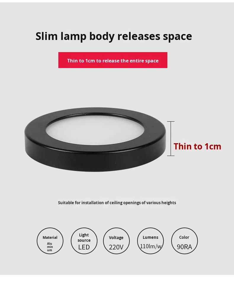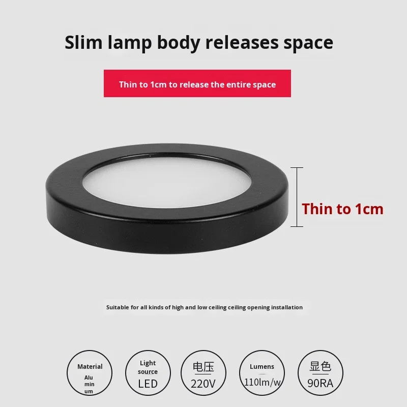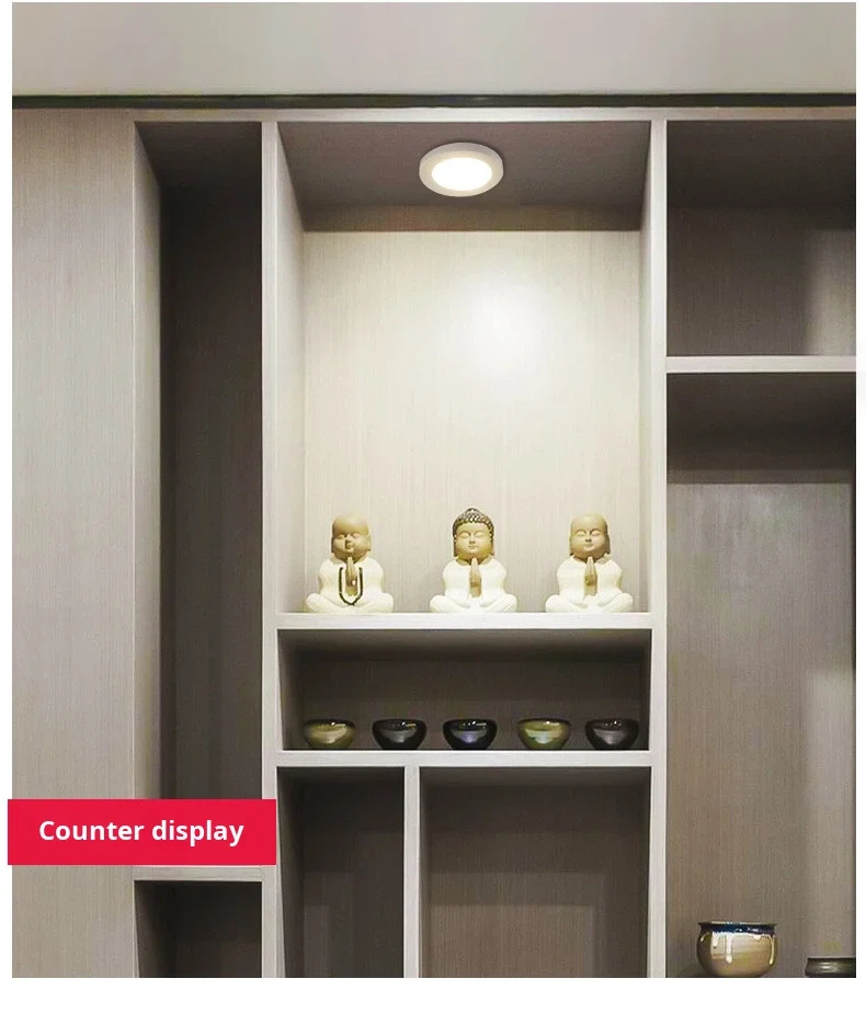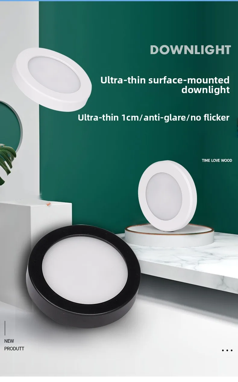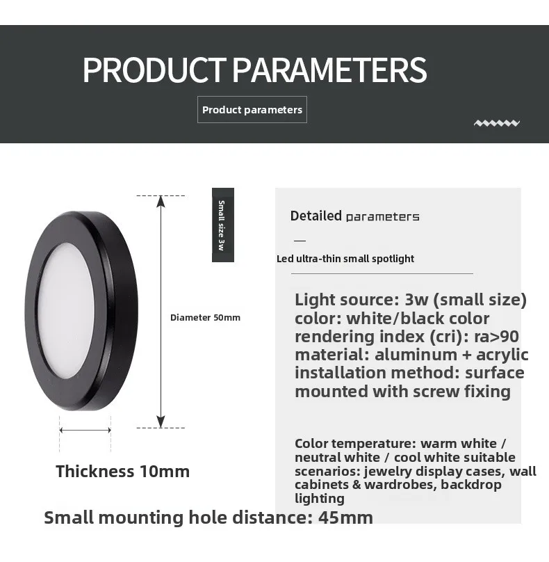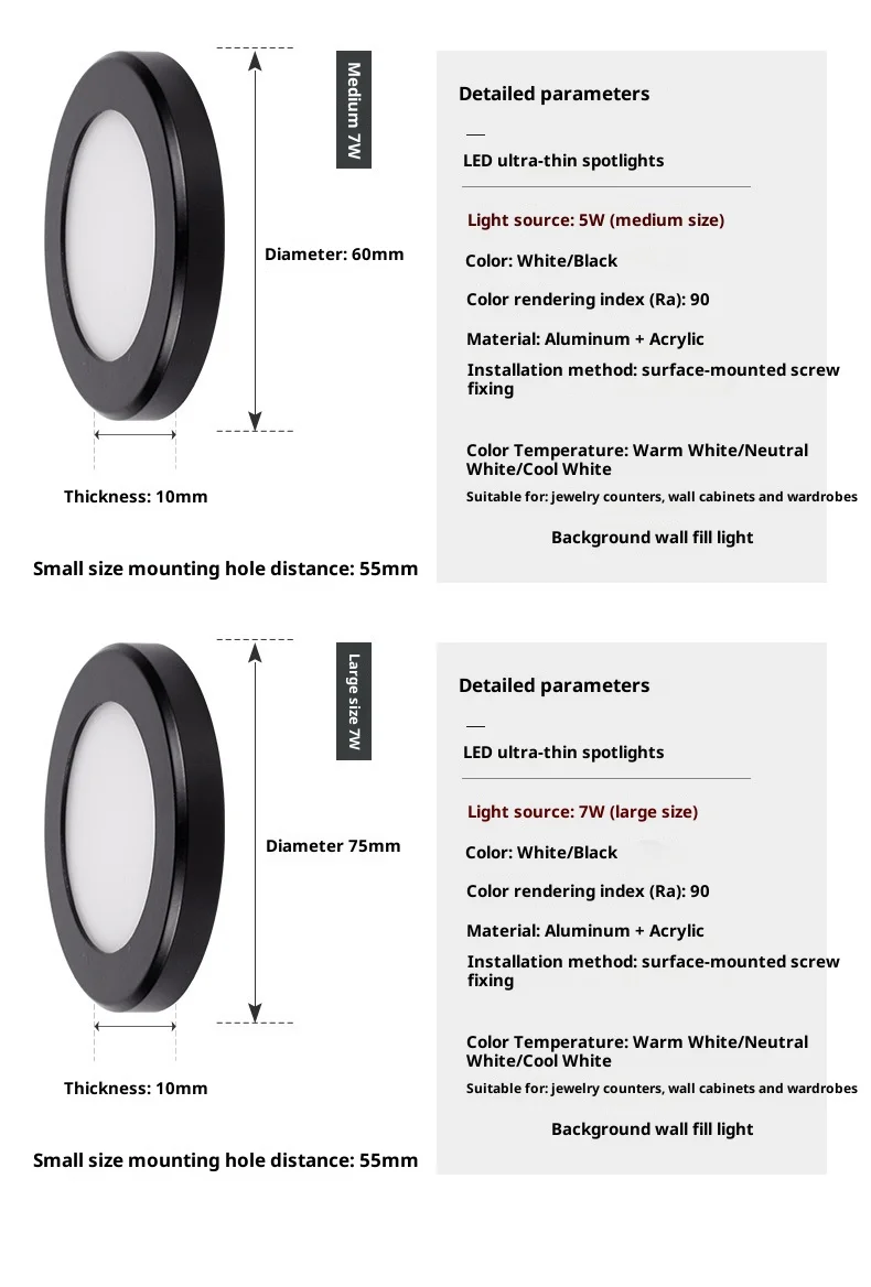 Lampu Downlight LED Tanam Ultra Tipis 1 cm 3W 5 Watt Tanpa Bor Tahan Air Dapat Diredupkan untuk Lemari Anggur & Display Spotlight Mini Kecil Warna Hitam