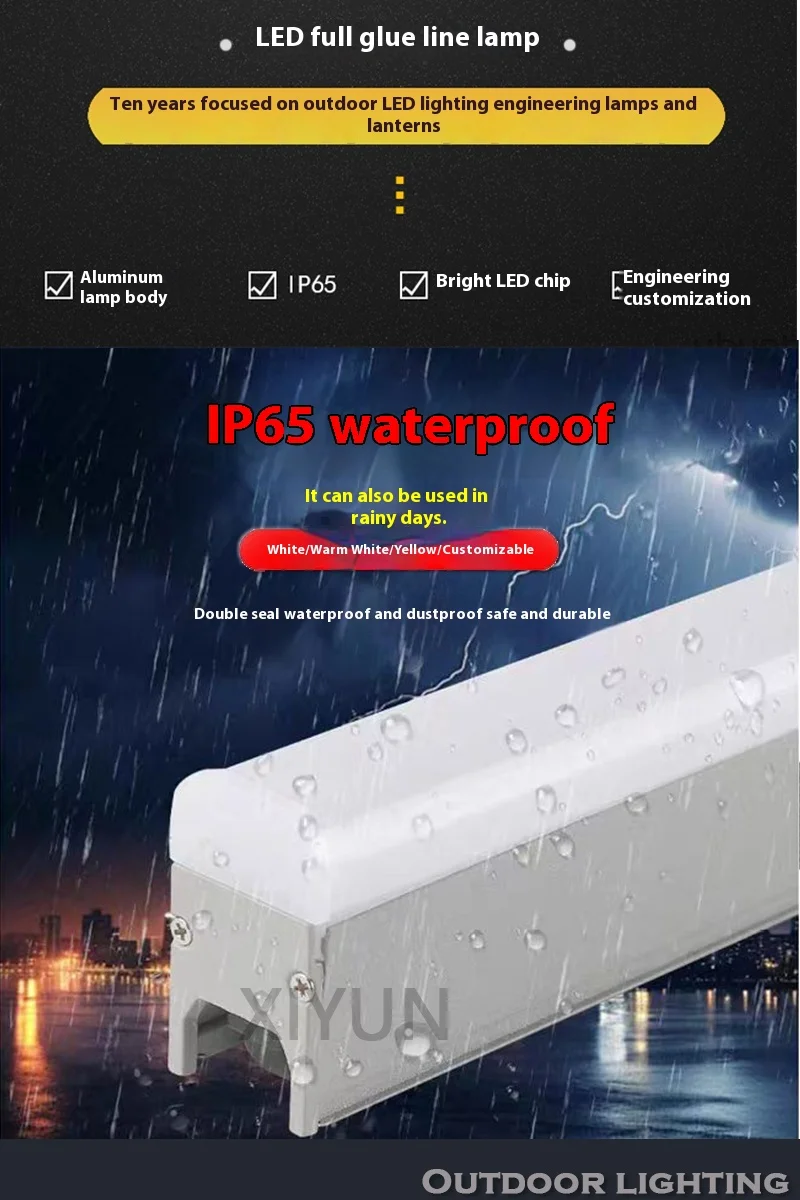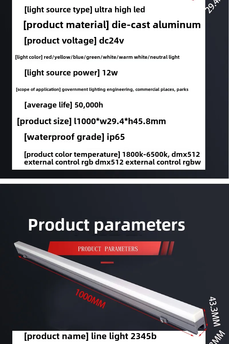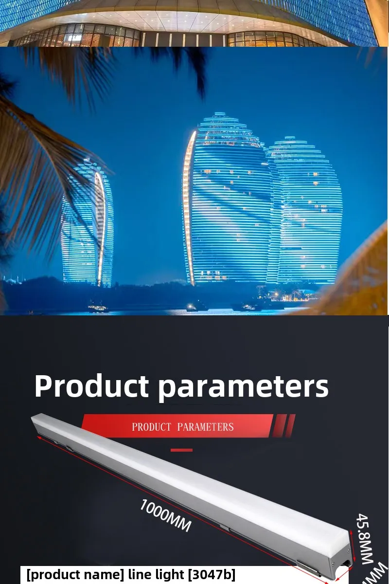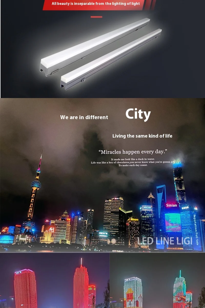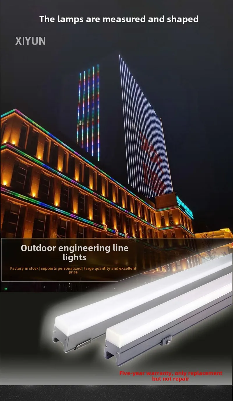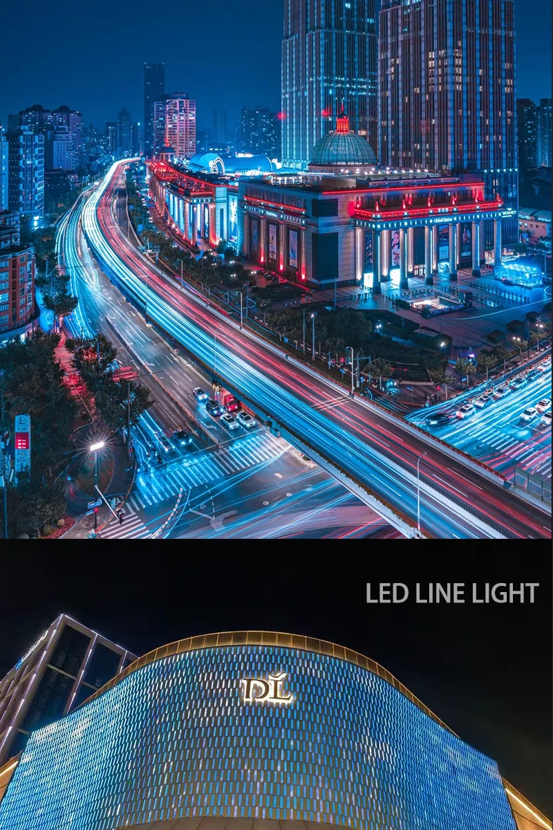 Lampu LED Tahan Air Tipe Garis untuk Iklan Dinding Eksterior Lampu Hias Warna-Warni untuk Penerangan Luar Jembatan IP65