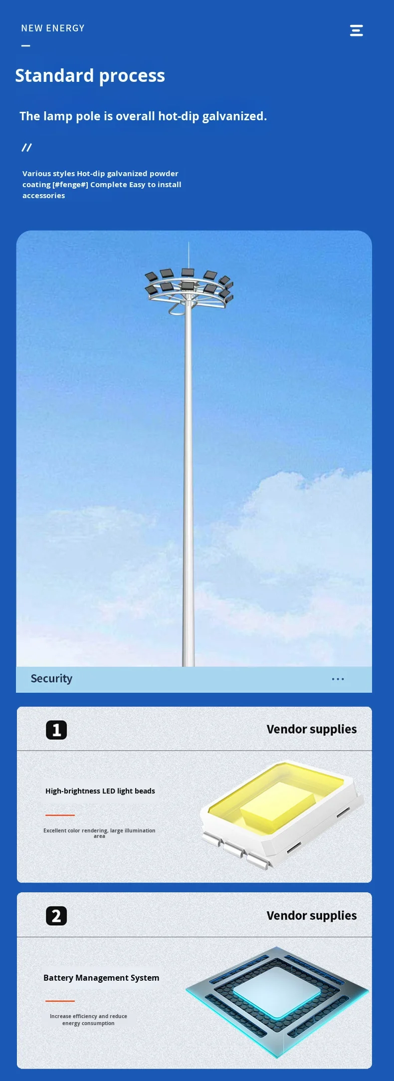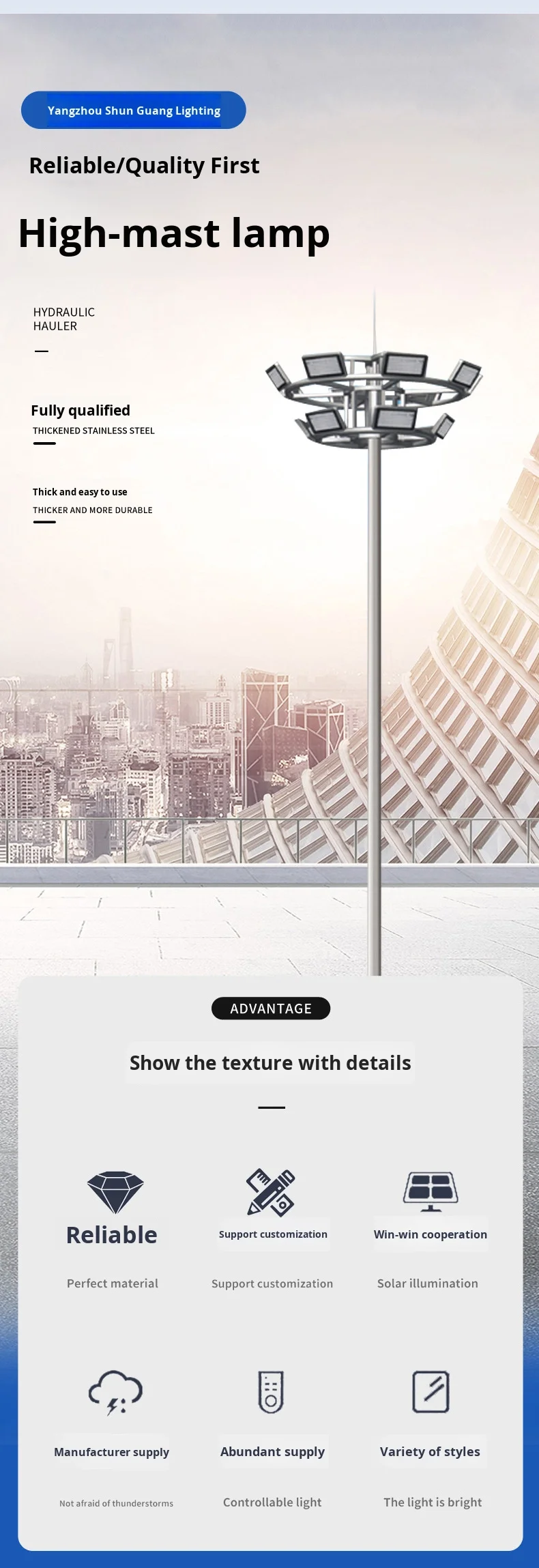 palo della luce alto 30 m in alluminio per esterni, palo faro con misuratore alto per illuminazione stradale, stadi, lampioni