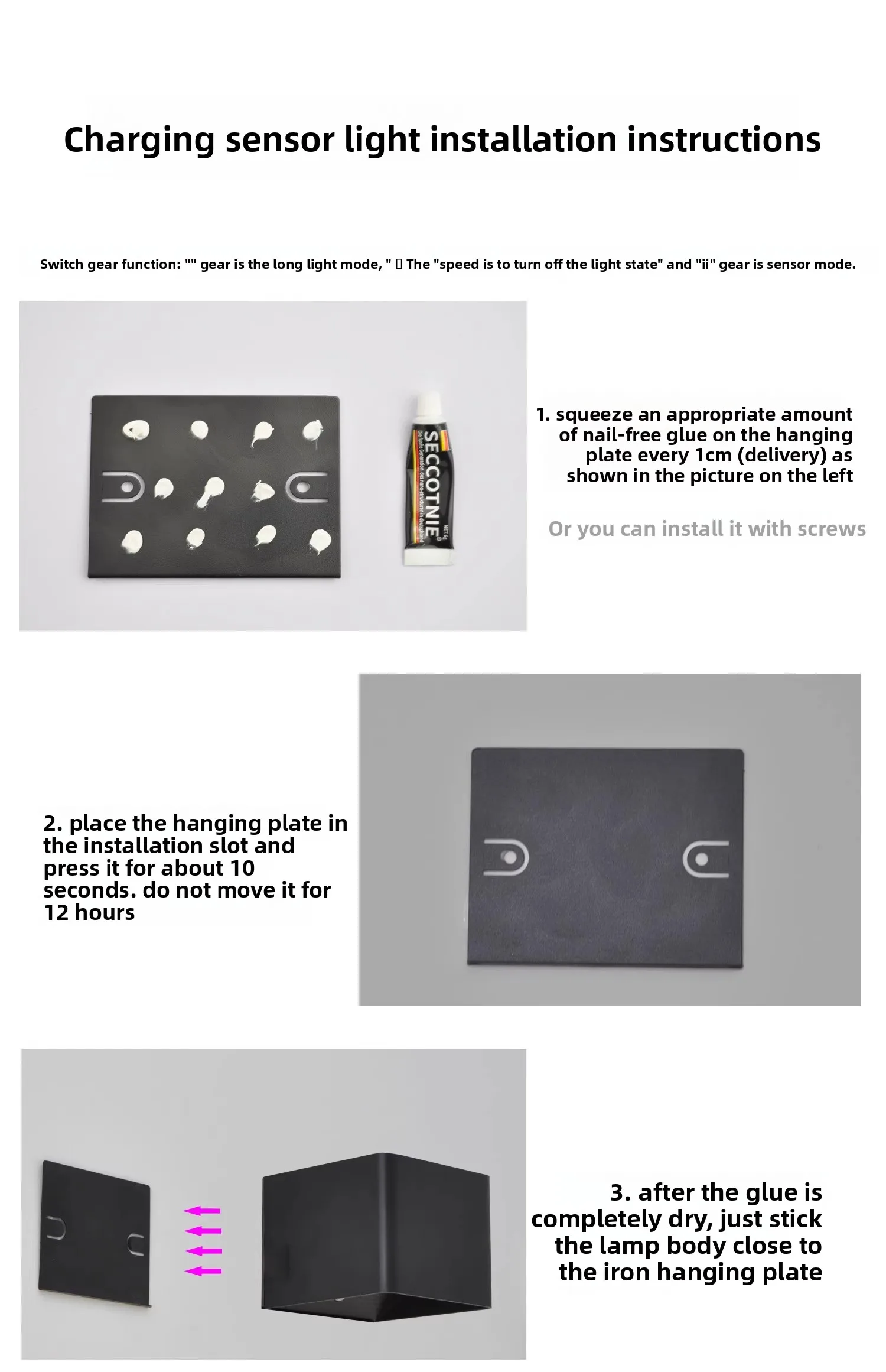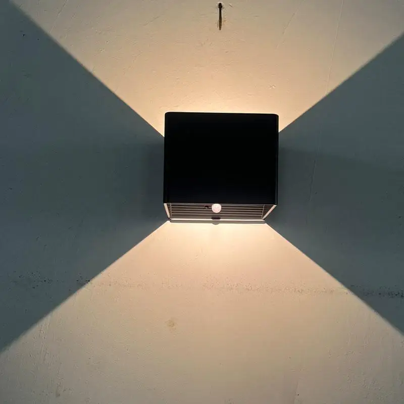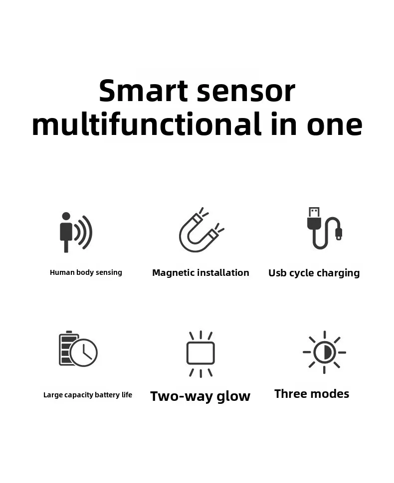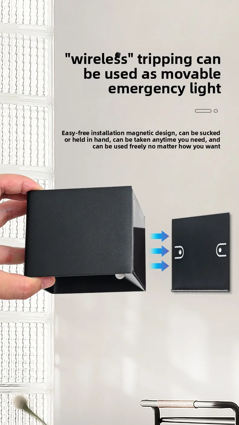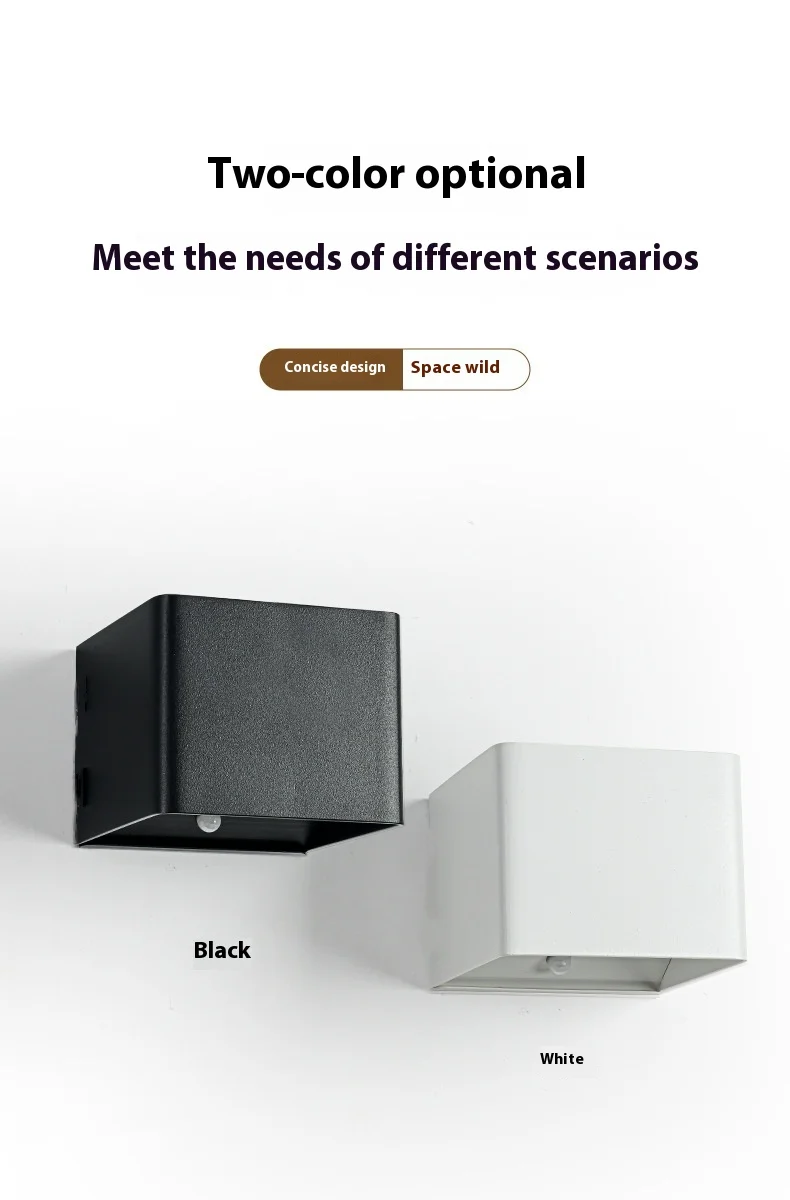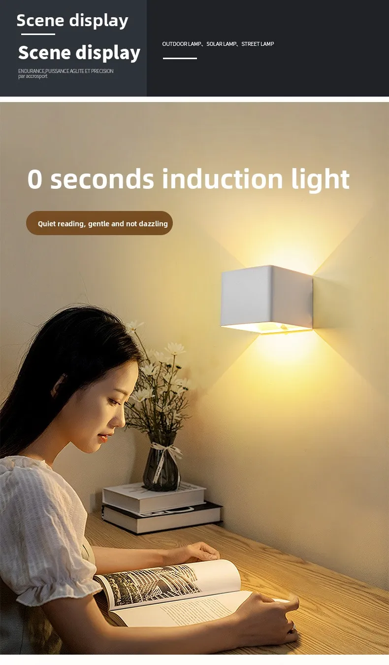 luce a muro LED con caricamento USB 5W in alluminio nero per camera da letto, lampada a muro ricaricabile con sensore di movimento wireless