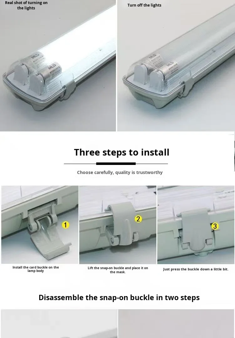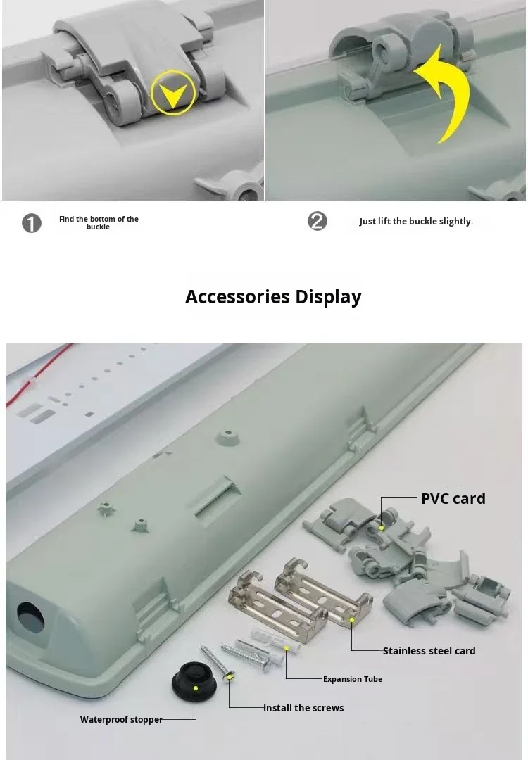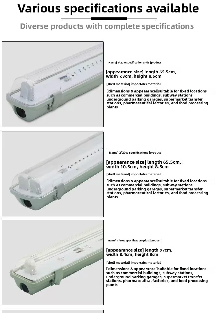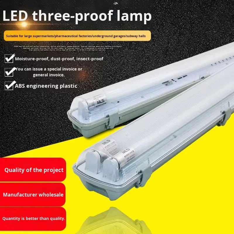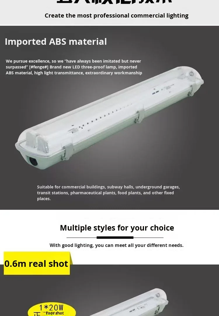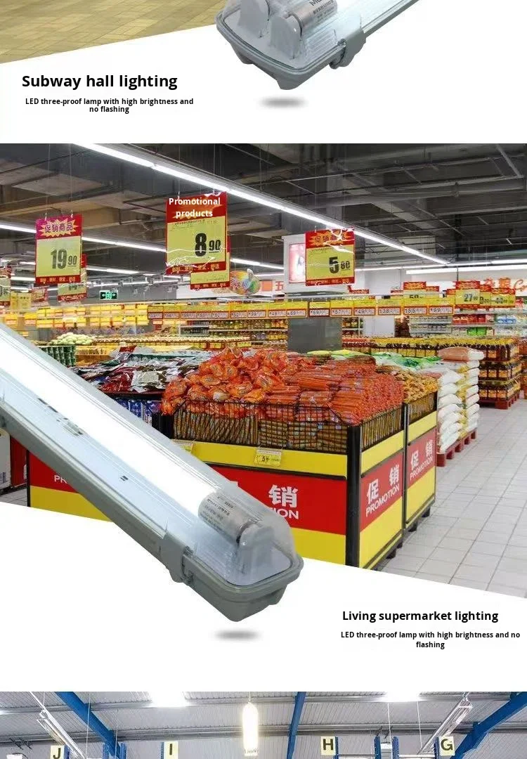 Luce Led Tri-proof Singola/Doppia Tubo per Officina Magazzino Tunnel Impermeabile Antipolvere 1,2 m Guscio con Supporto Zhao'hong Lighting