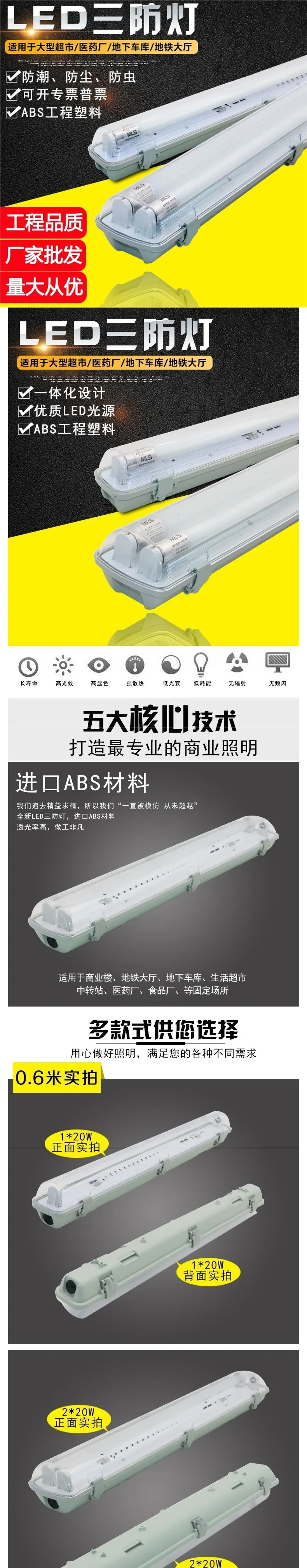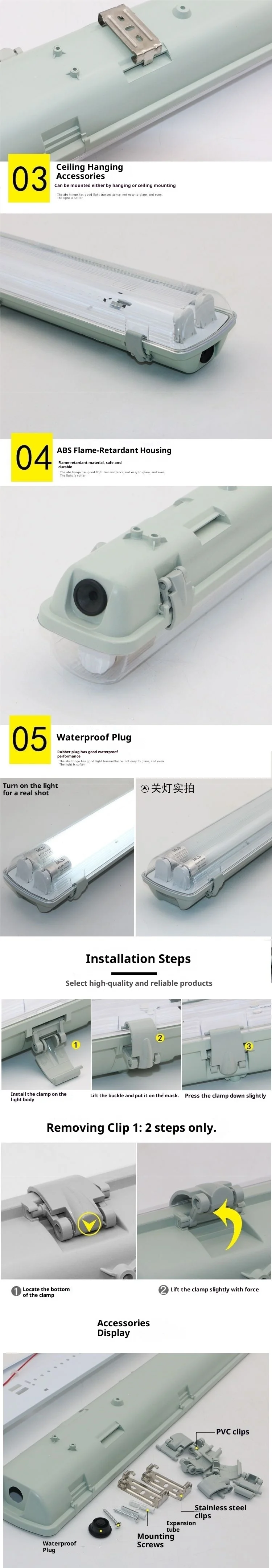 LED Tri-Proof a prova di acqua, insetti e polvere T8 a prova di esplosione Tubo luce diurna Singolo/Doppio Coperchio Set completo per