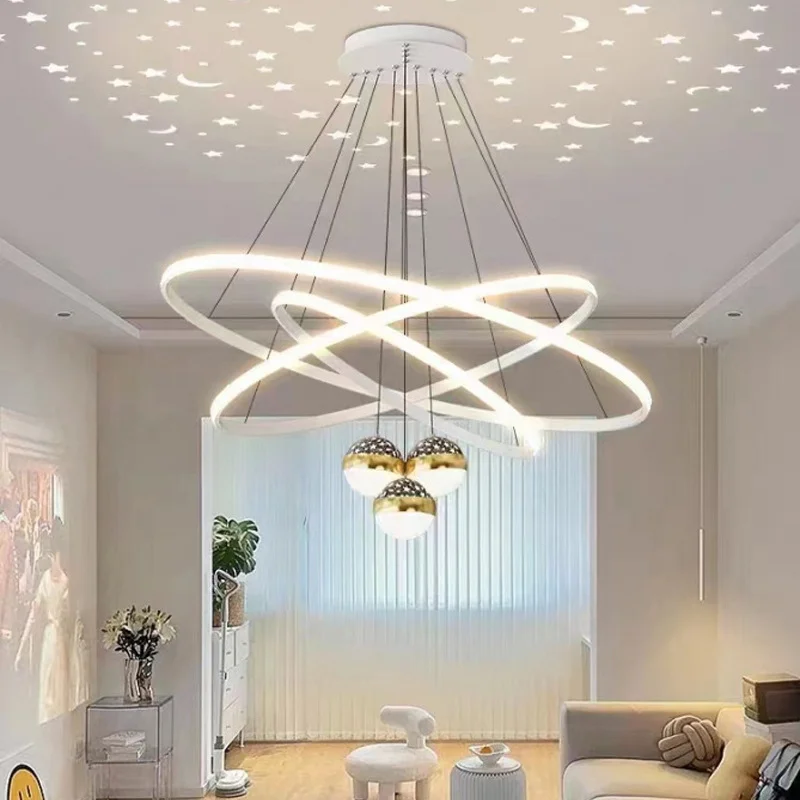 Lampadario moderno minimalista nordico con motivo del cielo stellato, di lusso e altezza regolabile, per soggiorno, camera da letto o ristorante