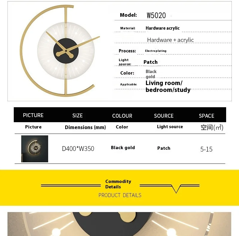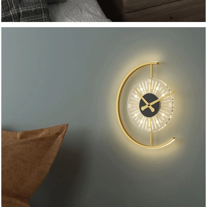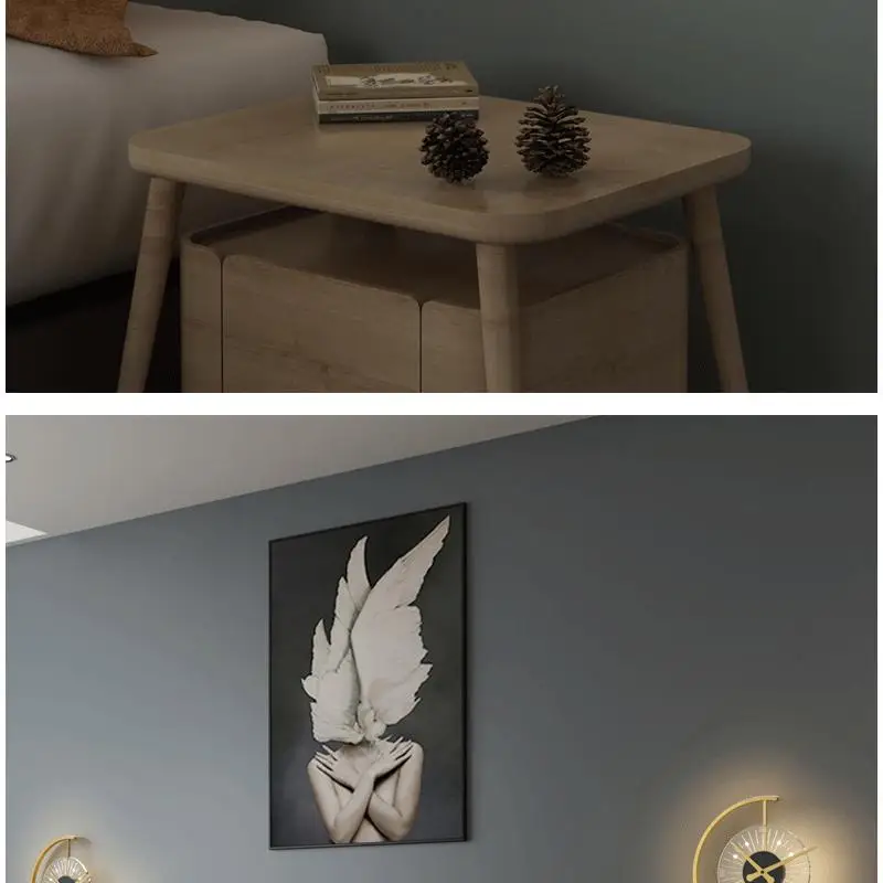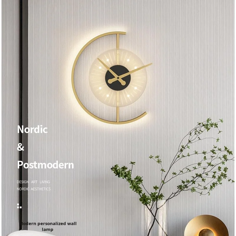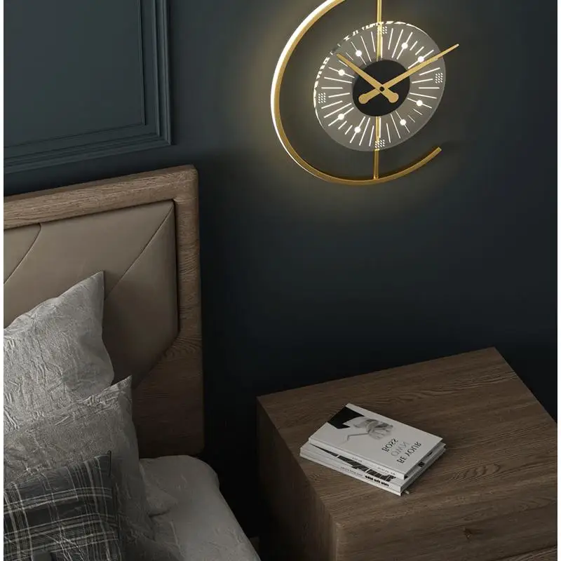 Lampada a muro industriale LED dorata in stile nordico con orologio e caricabatterie, luci da comodino moderne per camera da letto 90 6000 K, per soggiorno
