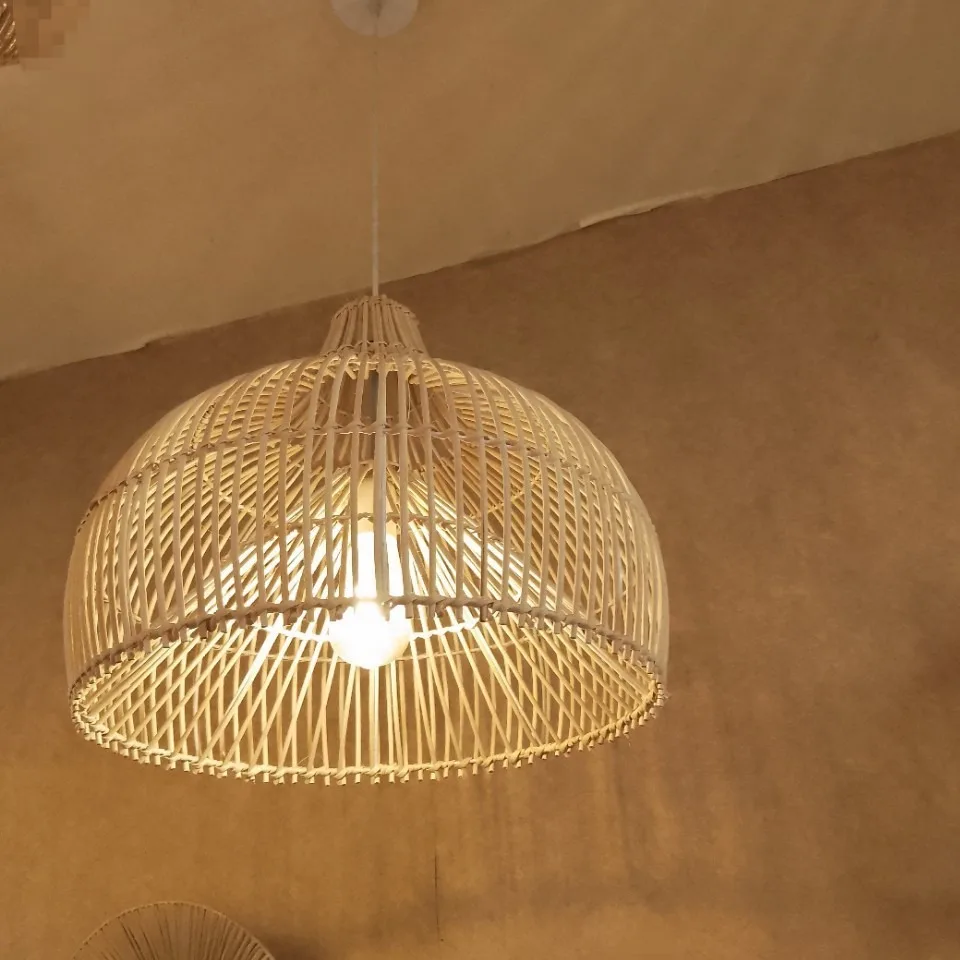 Lampada Pendente Paralume di Ratano a Forma di Cesto di Bambù Lampada Rotonda in Bambù e Ratano per Cucina, Albergo, Villa
