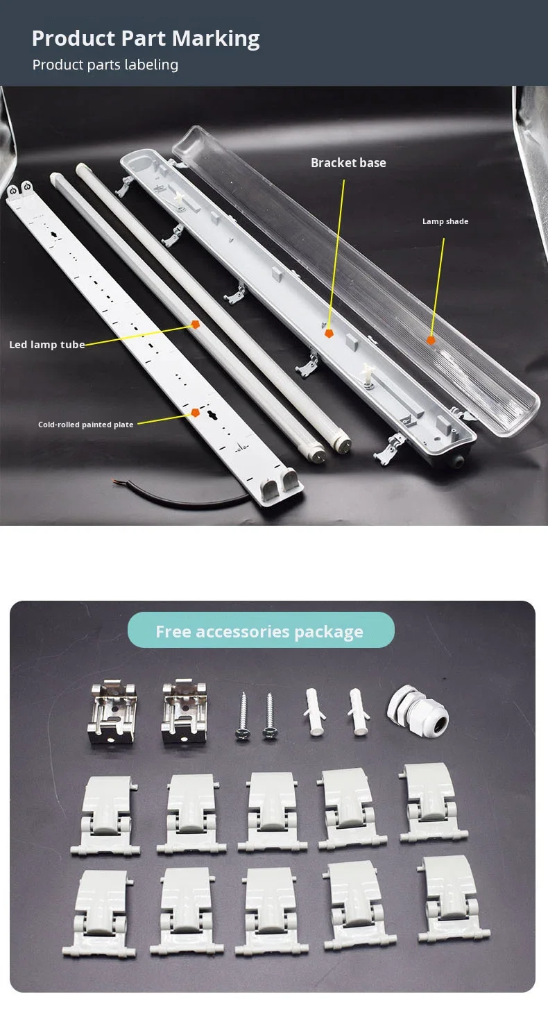 Vendita all'ingrosso 18W 36W Luce tubolare T8 Tri-Proof 1,2 m Ultra luminosa Singolo/Doppio Tubo Bianco caldo Impermeabile IP65 Antipolvere Industriale
