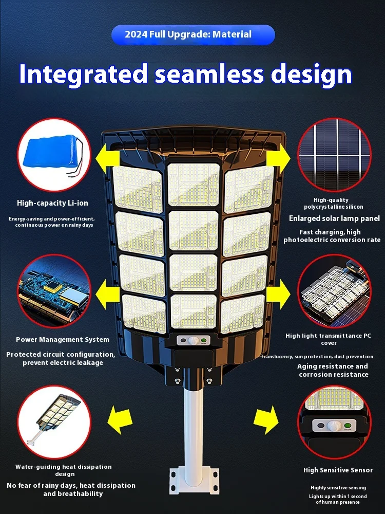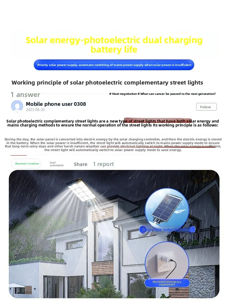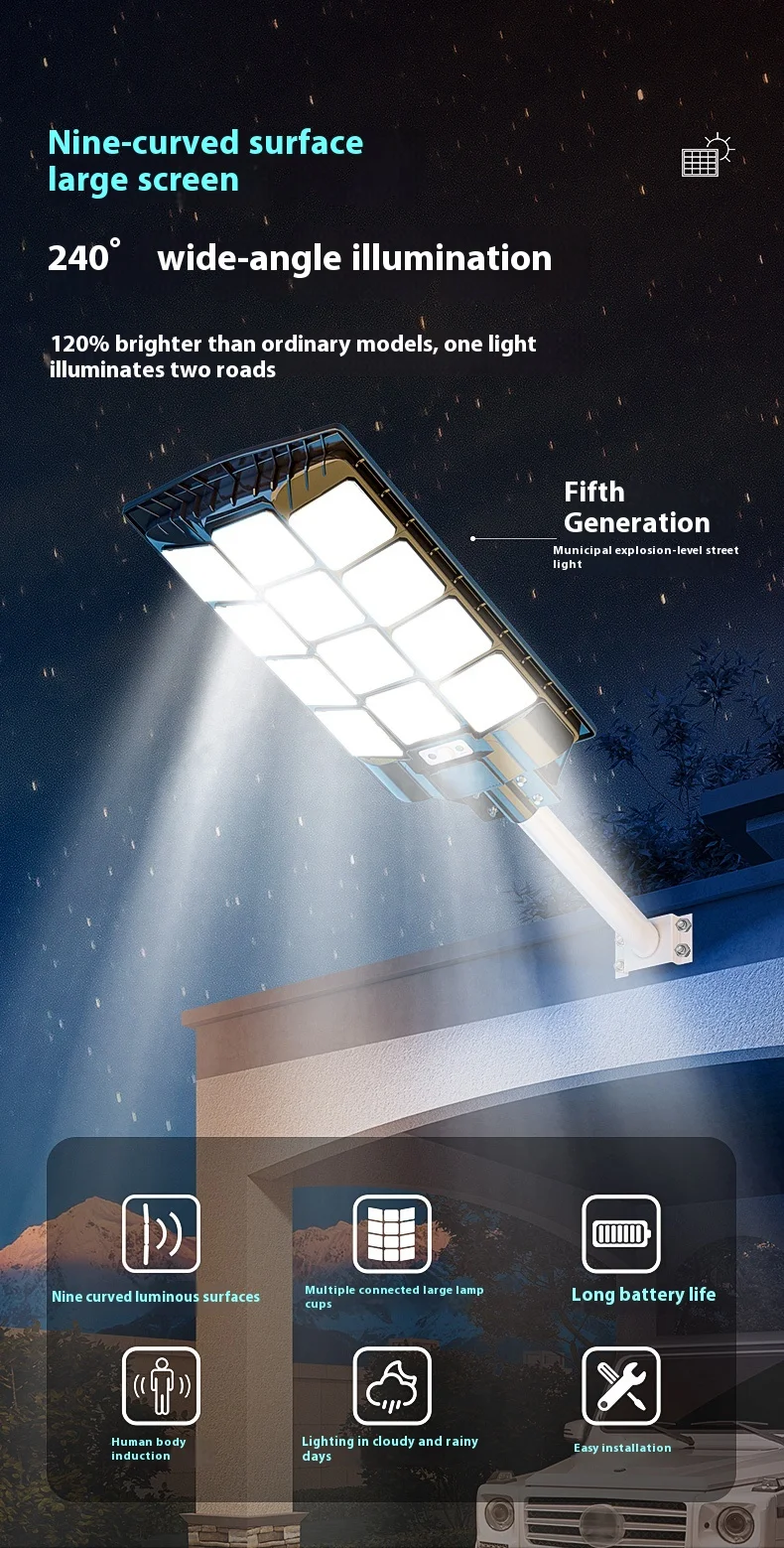 lumen Solare LED 50 Watt IP66 Impermeabile 40 Horarum Operationis cum 6-8 Horis Replecionis Corpus Aluminium ad Usum Externum in Viis