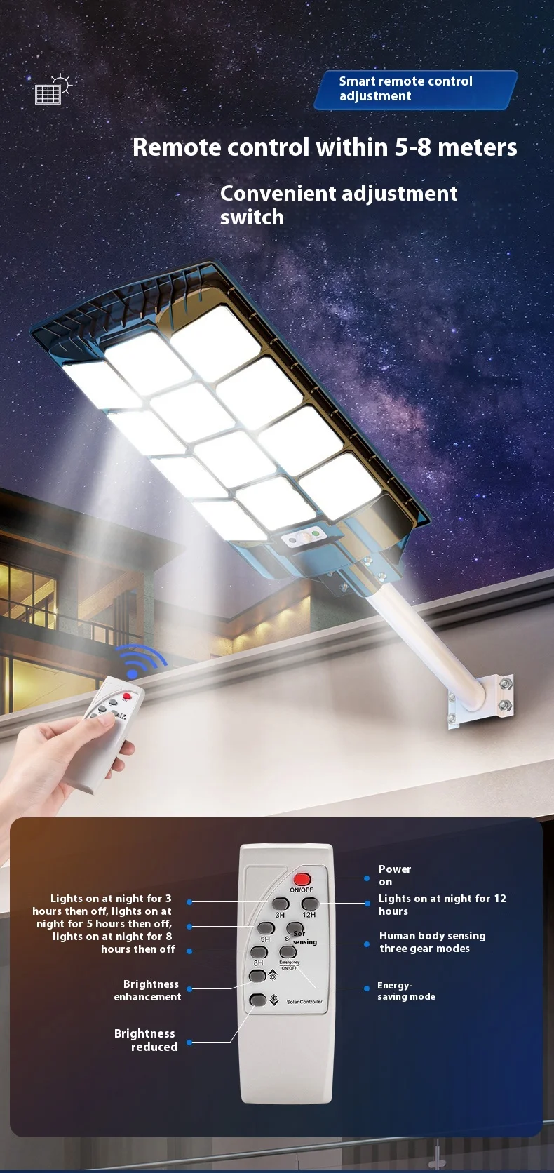 Modus sensoris corporis humani, modus lucis regendae (automatice se resarcit die / automanum lumen accendit ubi obscurum est) |
