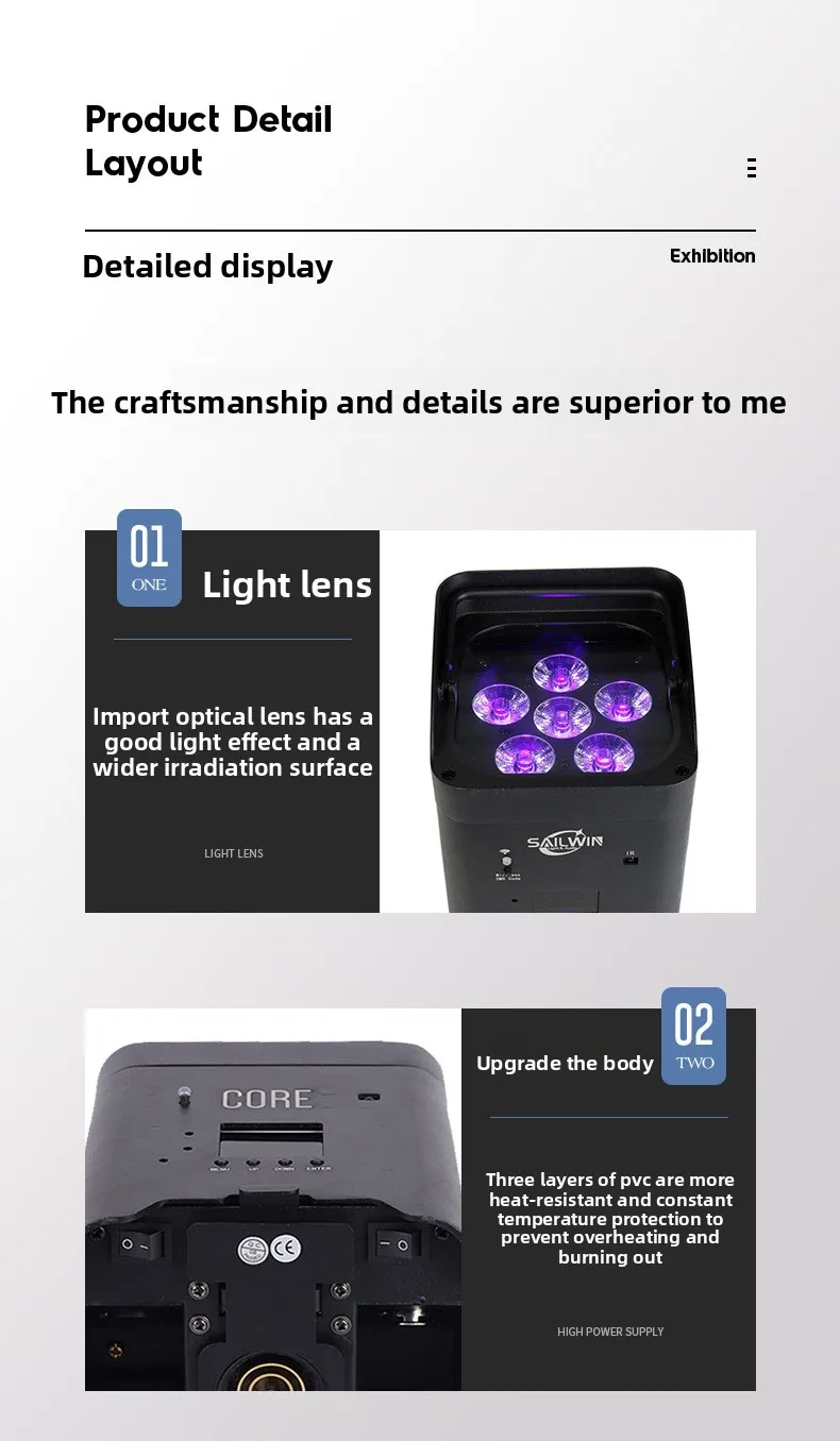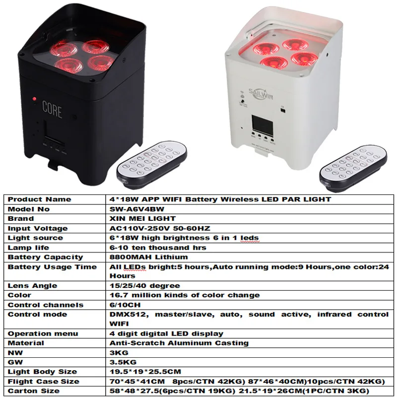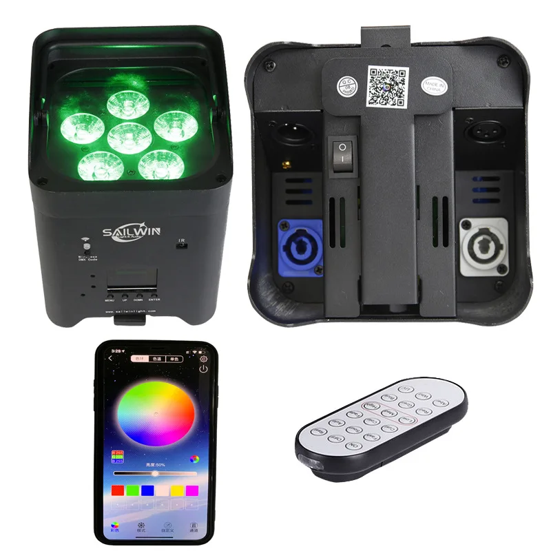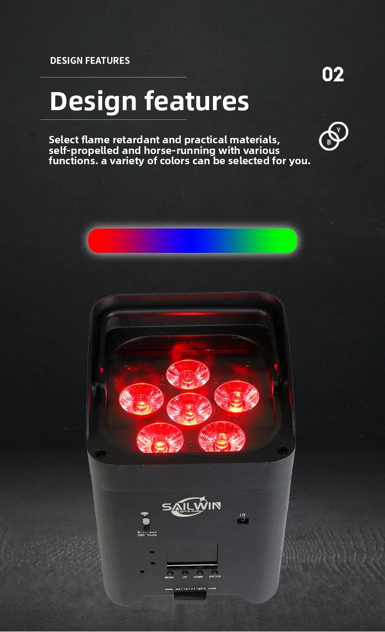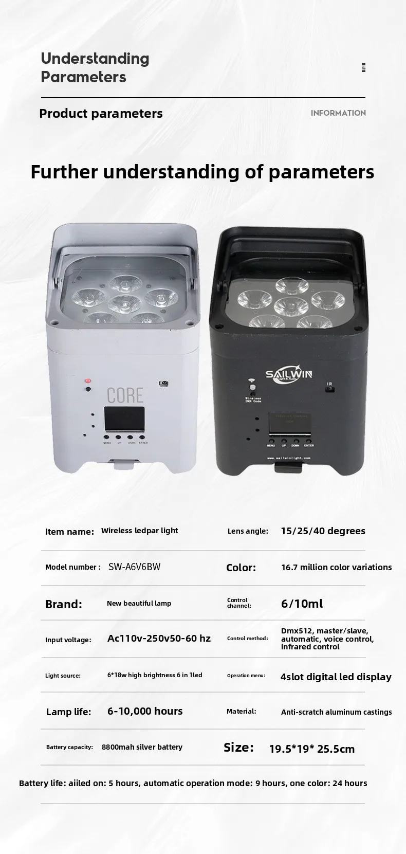 Lumen LED PAR Aluminium RGBAW UV 6X18W 6IN1 Certificatum CE Operatum Batteria Lucerna Calida Alba DMX512 Pro Scenam pro DJ