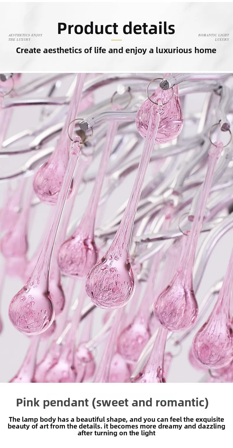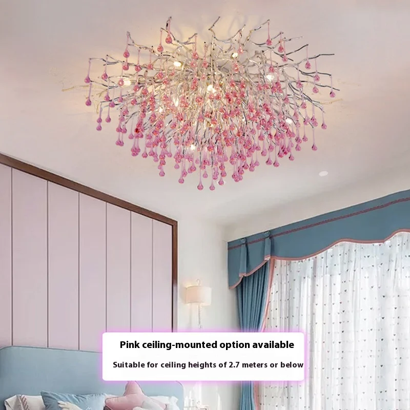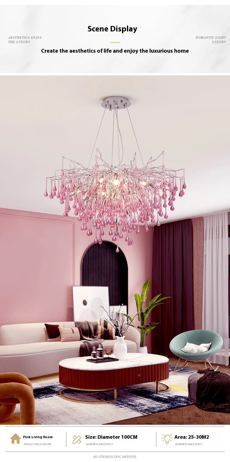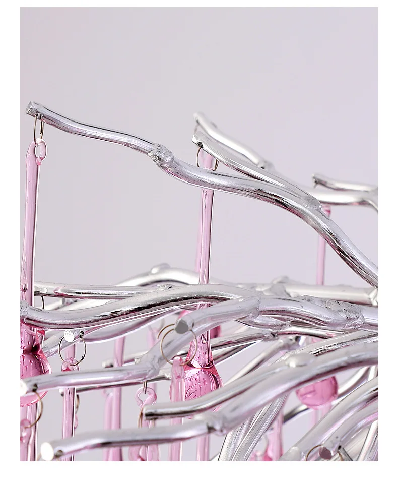 Candelabrum Luxuosum Gallicum ex Cristallo Rosa Cordis Coloratum pro Cubiculo Puerarum, Candelae, Domina, Lampas Popularis pro Cubiculo Infantium