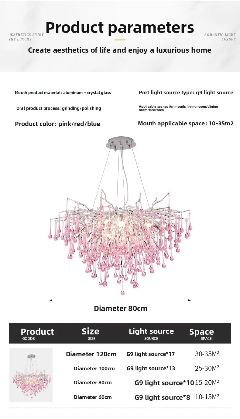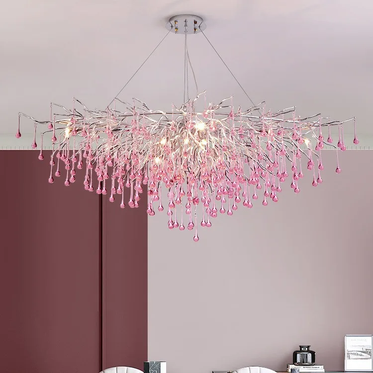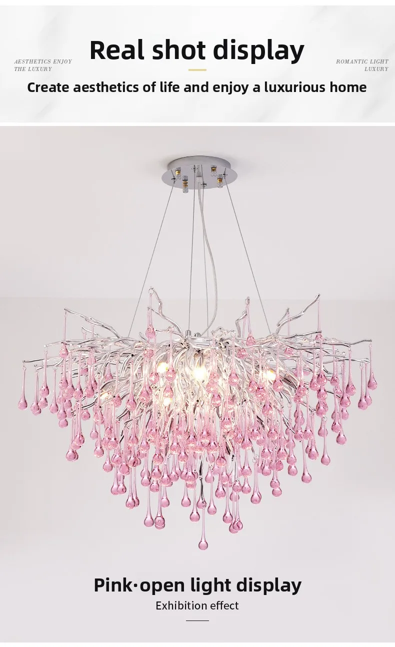 Candelabrum Luxuosum Gallicum ex Cristallo Rosa Cordis Coloratum pro Cubiculo Puerarum, Candelae, Domina, Lampas Popularis pro Cubiculo Infantium