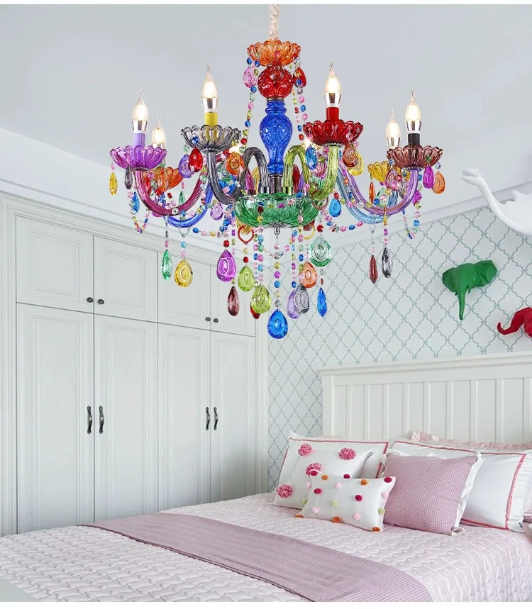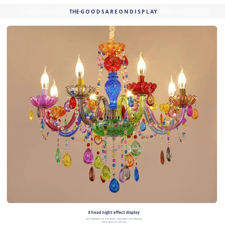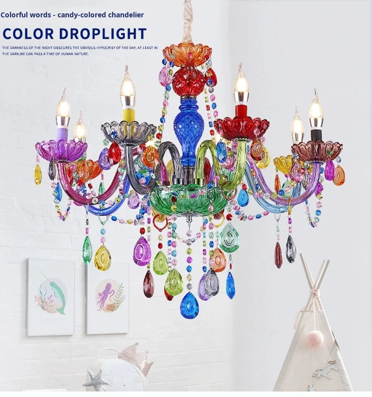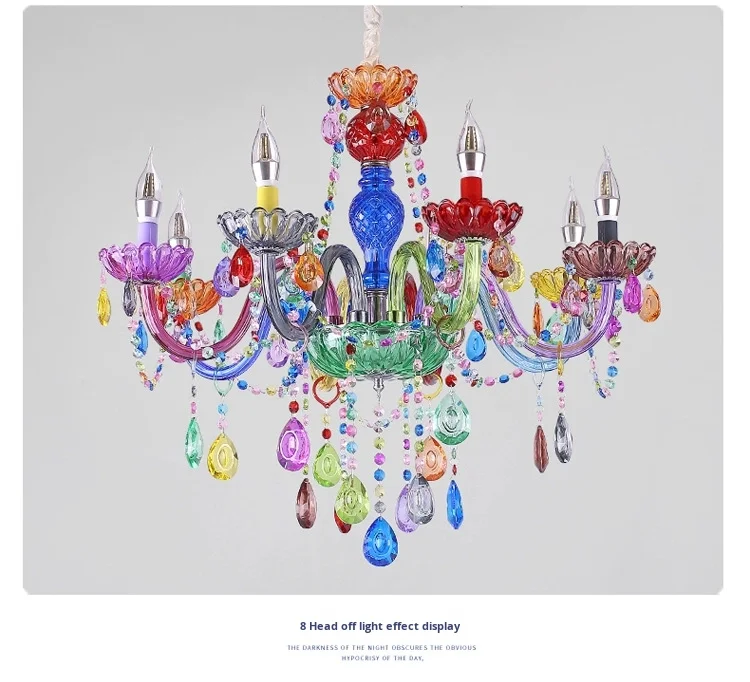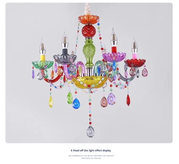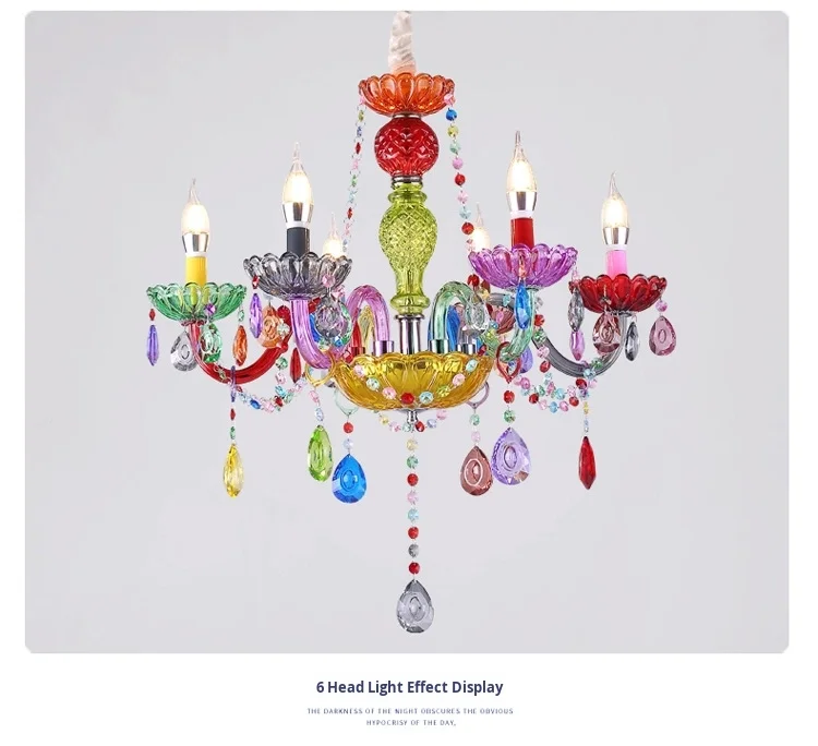Luminare Pendentis Crystallo Luxuriosum Coloratum Moderne pro Cubiculo vel Taberna, Illuminatio Candelae Colorata