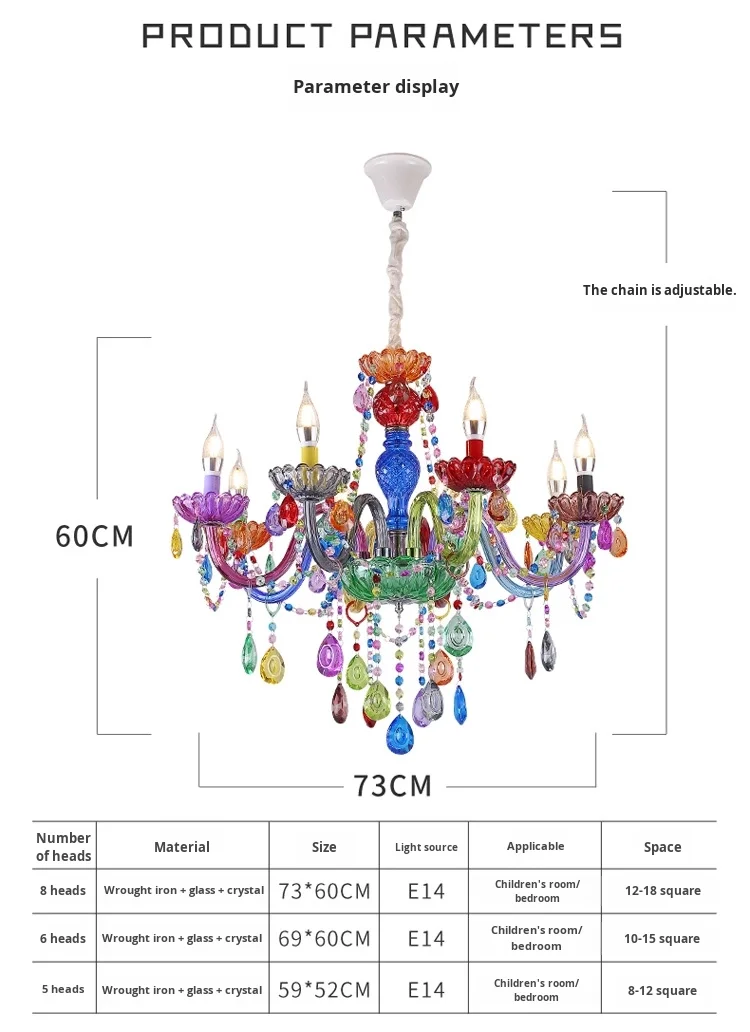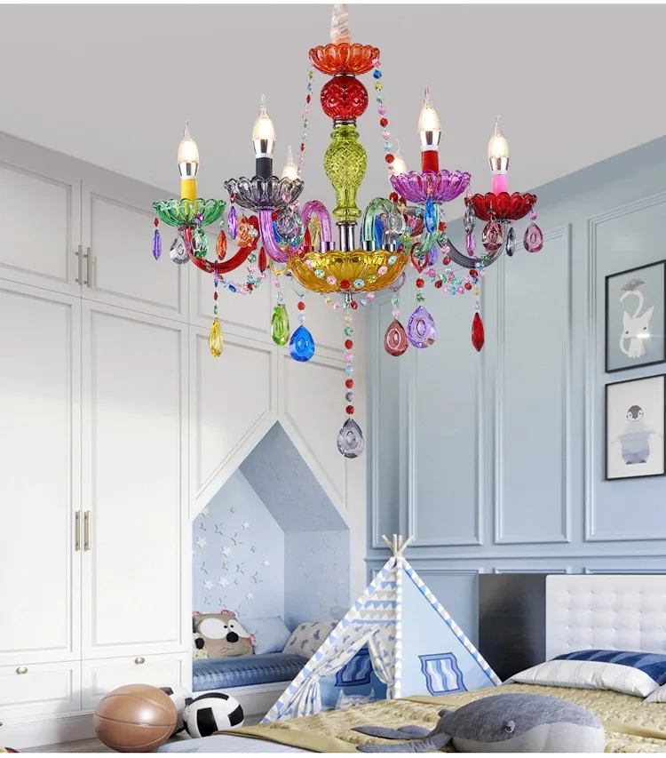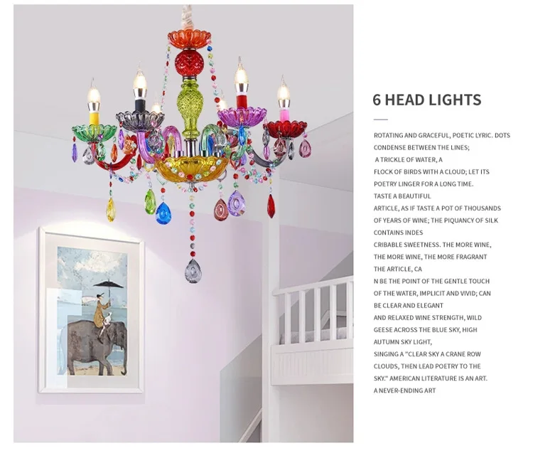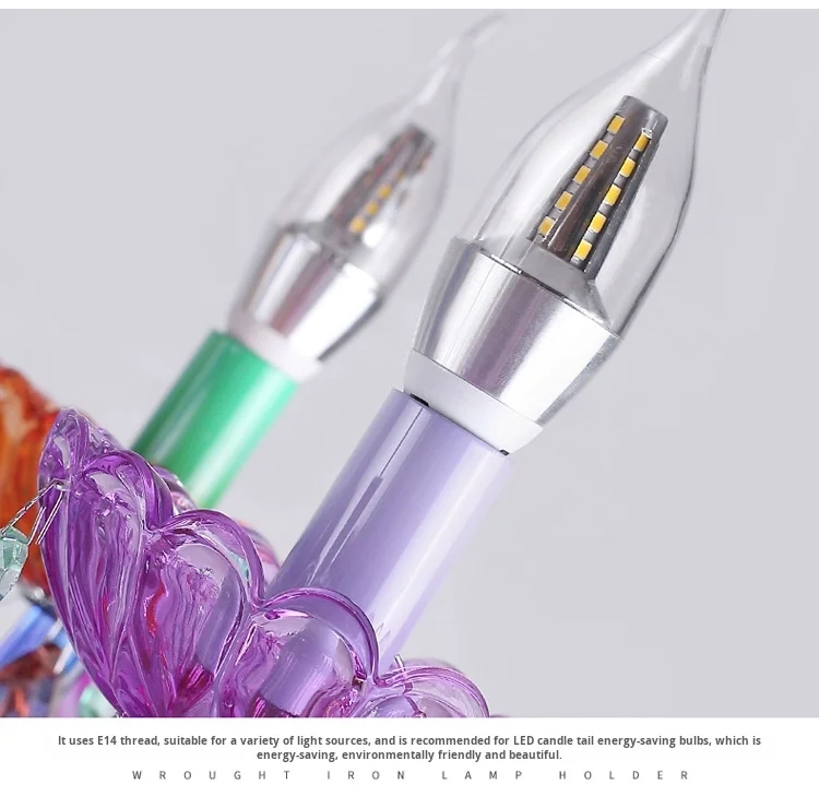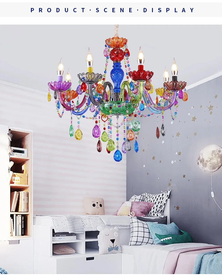 Luminare Pendentis Crystallo Luxuriosum Coloratum Moderne pro Cubiculo vel Taberna, Illuminatio Candelae Colorata