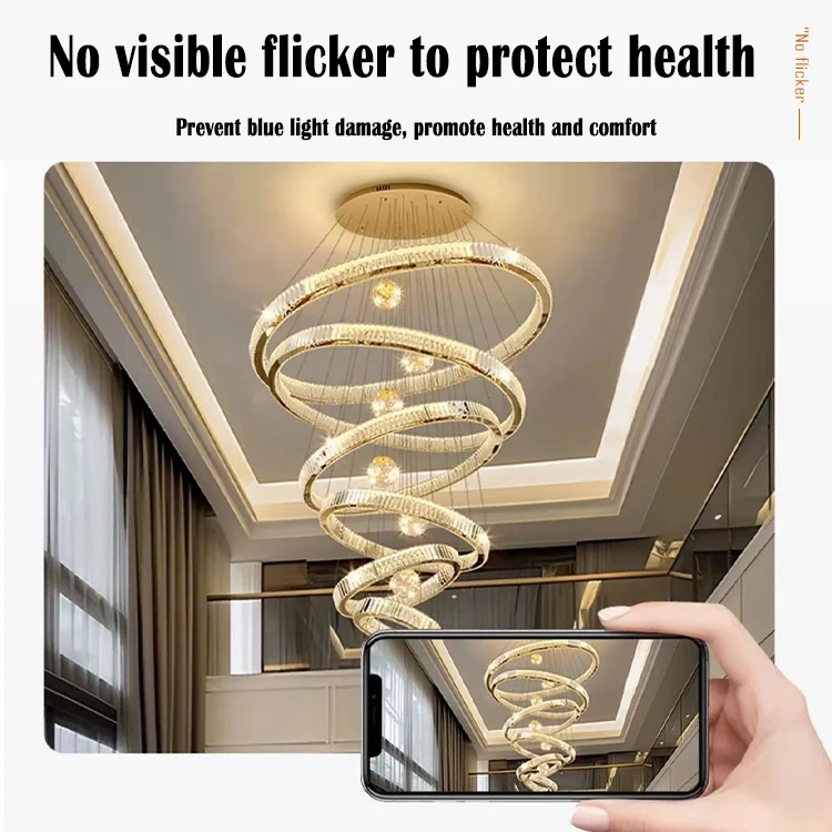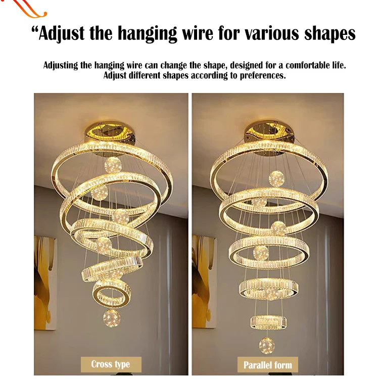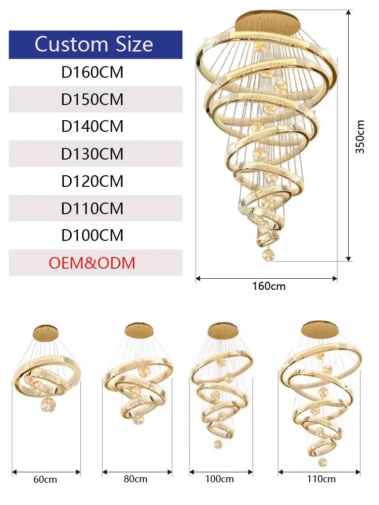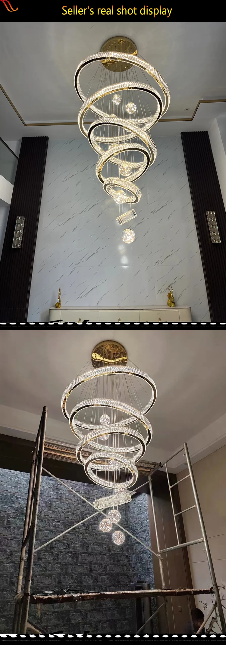 Luxuria Moderna rota Candelabrum pro Atrio Convivii, Vestibulo et Scalae Custom Aedificata pro Installatione in Tecto cum Telecommanda