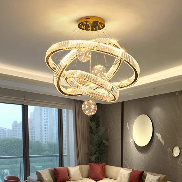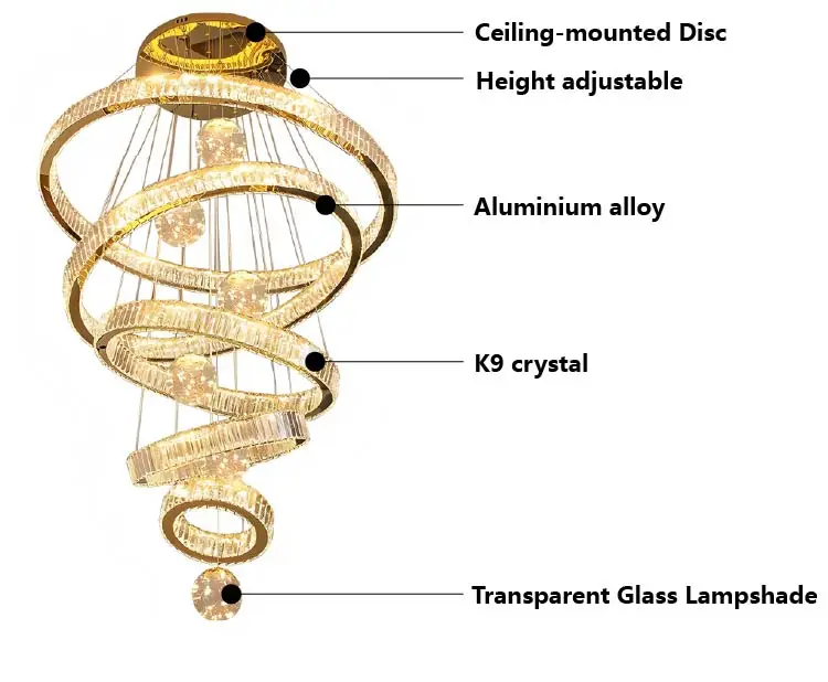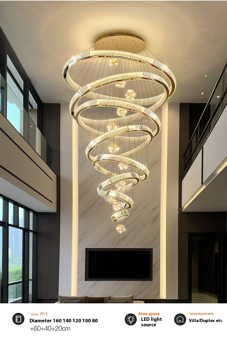 Verus photographus insculptae crystallinae pluristratim annularis lucernae in vestibulo aedificii duplex