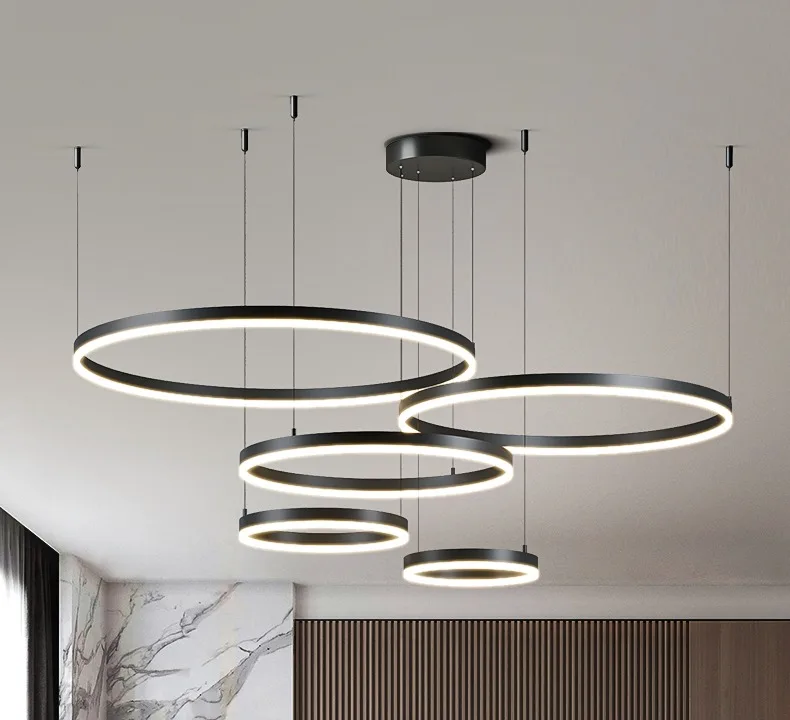 Lampu gantung cincin minimalis moden untuk ruang tamu dan ruang makan lampu utama elegan dari pencahayaan Zhongshan lampu sederhana baharu