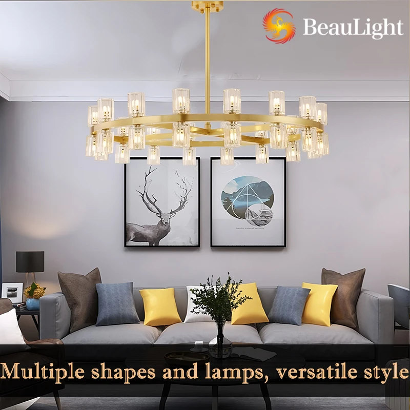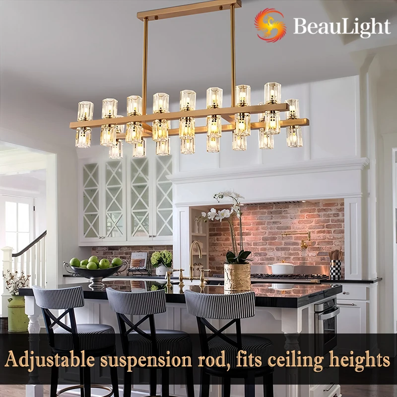Amerikaans Ontwerp Rechthoekig Messing Kristallen Kandelaar Middelgroot voor Woonkamer Eetkamer Thuis Decoratieve Verlichting
