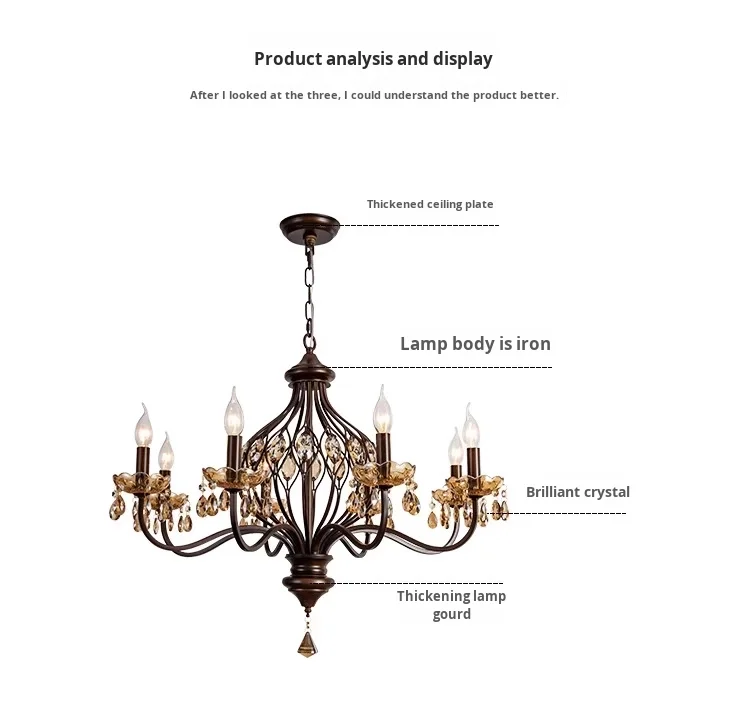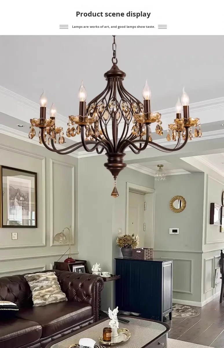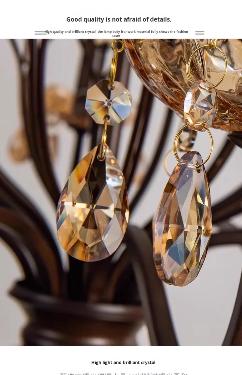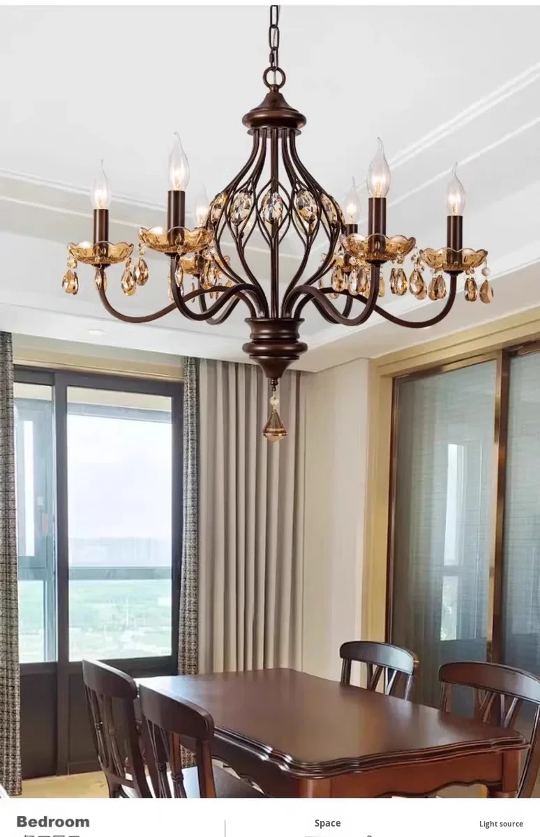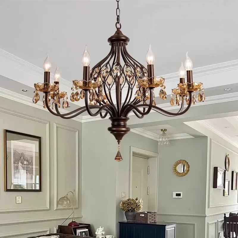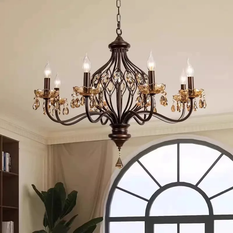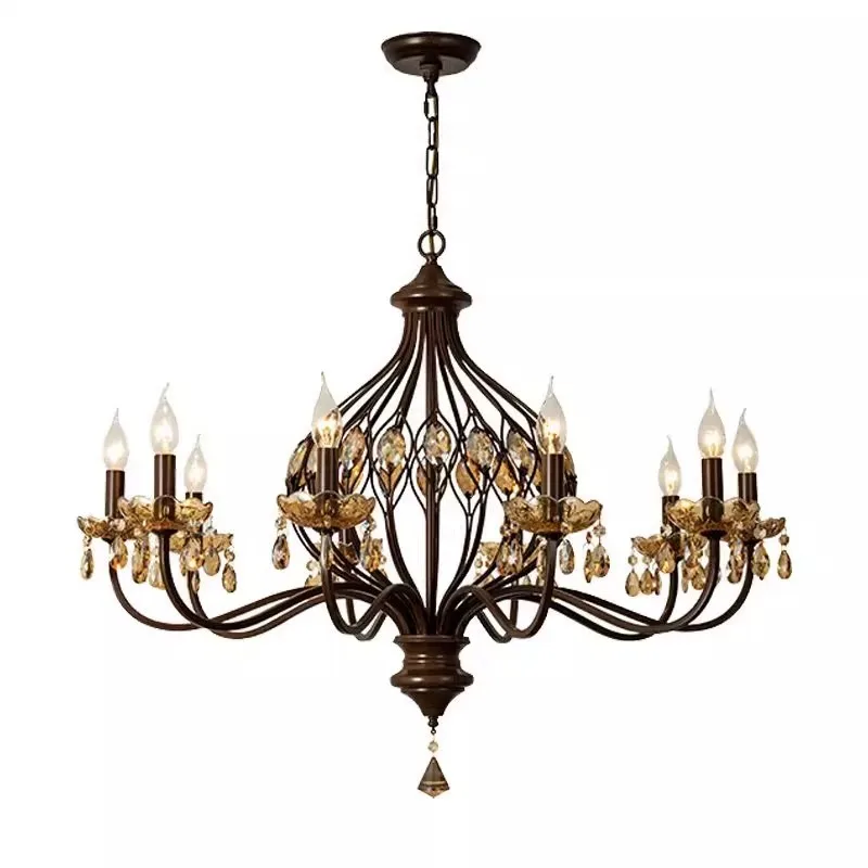 Duplex Woonkamerluster, Villa Entree Luster, Gesmeed IJzer, Europees Trappehuis Kristallen Luster