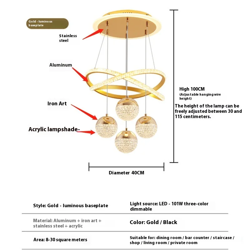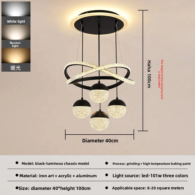 Modern minimalistische LED-hanglamp, hoogwaardig thuisgebruik voor luxe woonkamer, restaurant, trapoverloop, verkrijgbaar in middelmatige maten