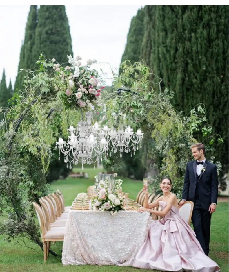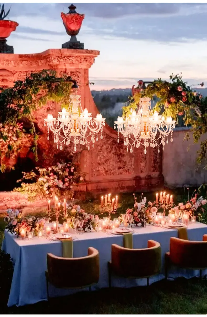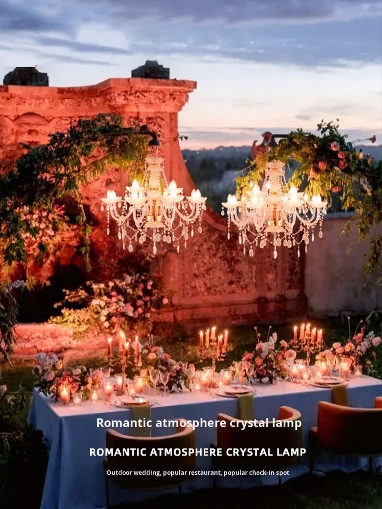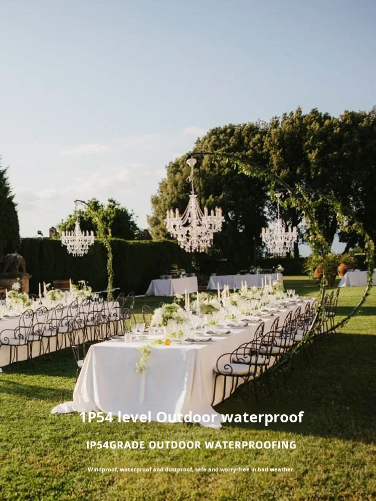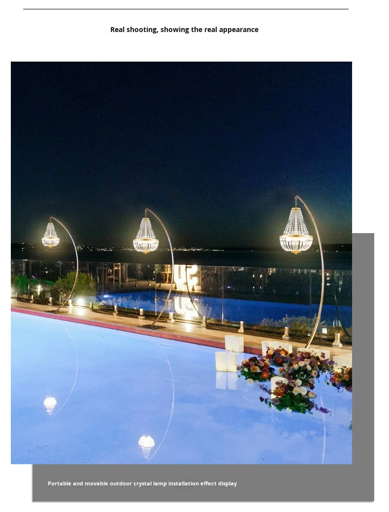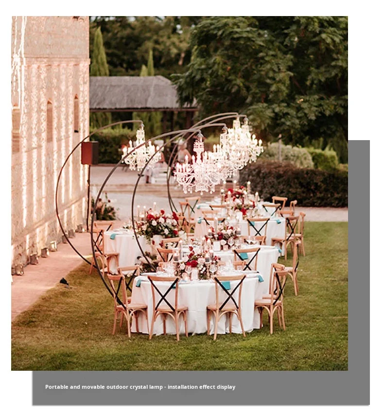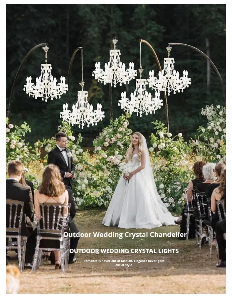 Bruiloftsfeest tuinkroonluchter boogstand kristallen hangelampen tafelcentrumstukken kroonluchter