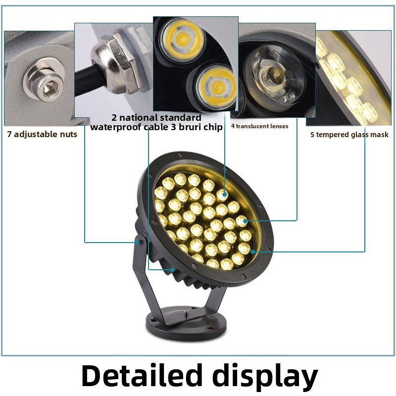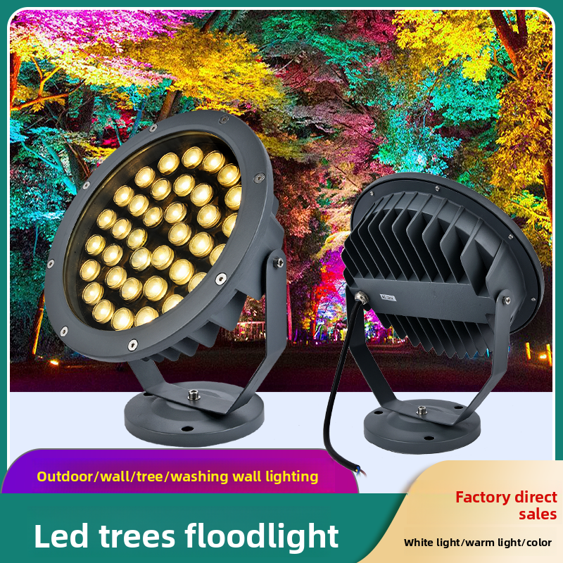 This is an LED tree light, made of die-cast aluminum + tempered glass, with a voltage of AC220V, suitable for lawns, landscapes, parks and other scenes, and has various light colors. There are various sizes and powers to choose from. It adopts a thickened tempered glass cover and a die-cast aluminum alloy shell, has an IP65 waterproof rating, high engineering quality, and a wide range of applications. The installation method is flexible, the angle can be adjusted, and it can create colorful landscape effects. It also has good blue light display effects.