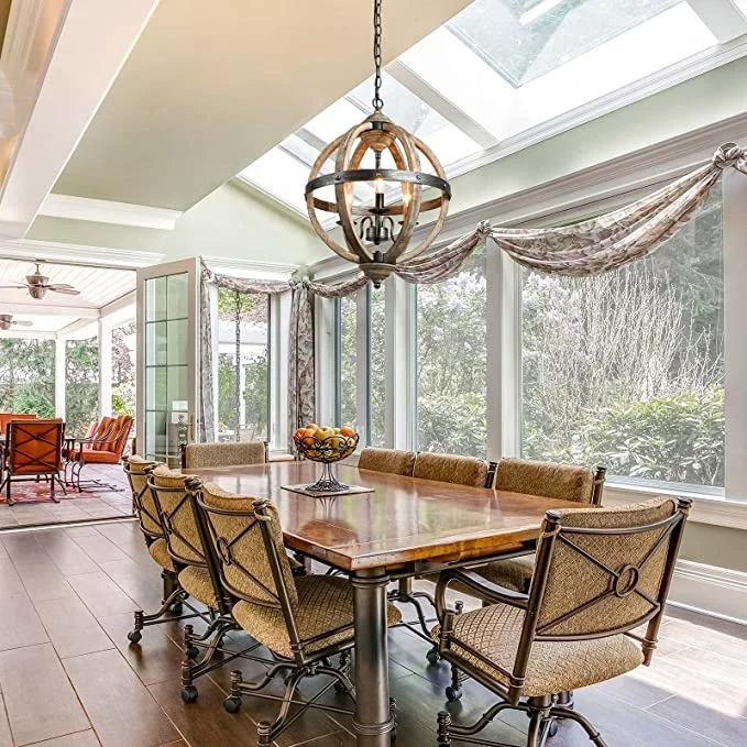 American Country Style Retro Wooden Art Lantern Chandelier Decorative Lighting for Restaurant Hotel Ceiling for Middle Room